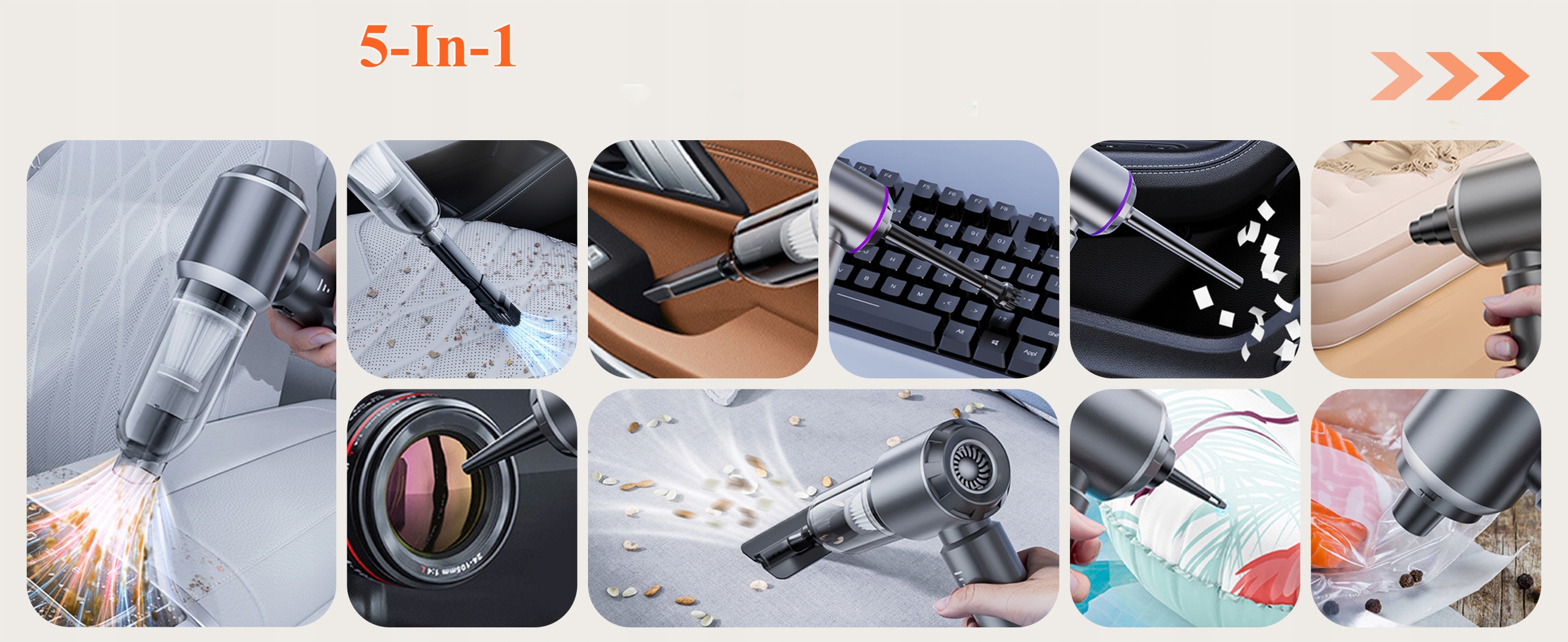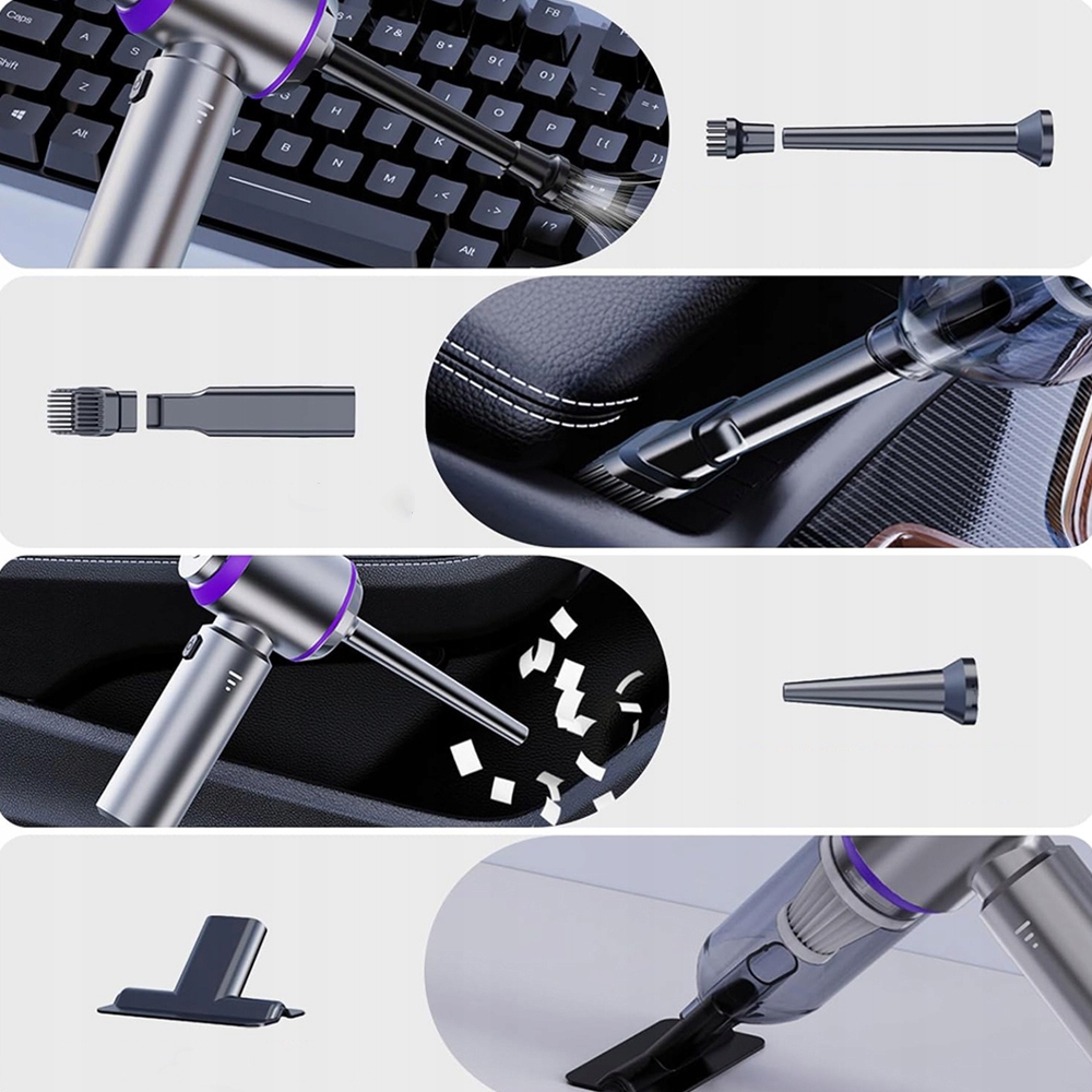 - ✅ 【багатофункціональний пилосос】: бездротовий пилосос оснащений відшарною головою пензля, соплами та іншими аксесуарами, які можуть використовувати для очищення сидіння. Наприклад, наконечник вентилятора може очистити пил з комп'ютерних клавіатур, камер та кондиціонерів; Наконечник всмоктування може очистити волосся, залишки їжі, клаптики паперу та великі молекули з диванів, автокрісла, вікна, килими та підлоги; Ви можете використовувати пилосос згідно з вашими потребами для полегшення очищення. 4 Очищувач вакууму акумулятора може бути легко захований у валізі чи гардеробі, завдяки якому ви завжди будете мати доступ до неї.