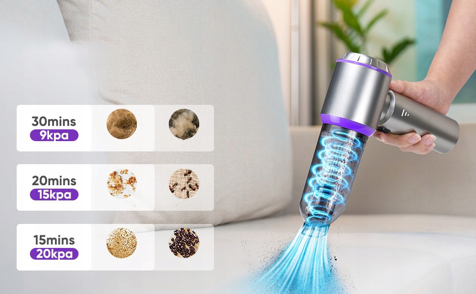 - ✅ 【Потужний вакуумний очищувач автомобіля з потужністю 20 000 ПА】: Цей бездротовий пилосос автомобіля оснащений вдосконаленим, швидким безщірним двигуном, який забезпечує високу потужність. 3 Регульовані режими всмоктування: 9000PA, 15000PA та 20 000, цей пилосос автомобіля дозволяє очистити волосся, крихти, пил та пісок, приховані в автокріслах або диванах, міцний та промитий фільтр HEPA HEPA забезпечує ефективну стрижню, при цьому запобігання пилу та бруду, що підтримує C. може бути повністю заряджений протягом 3,5 годин за допомогою 5 -ти/2 адаптера; Його можна використовувати близько 30 хвилин. Пристрій обладнаний кабелем зарядки типу-C, тому ви можете зарядити його за допомогою USB-розетки в машині або де-небудь ще вдома.
