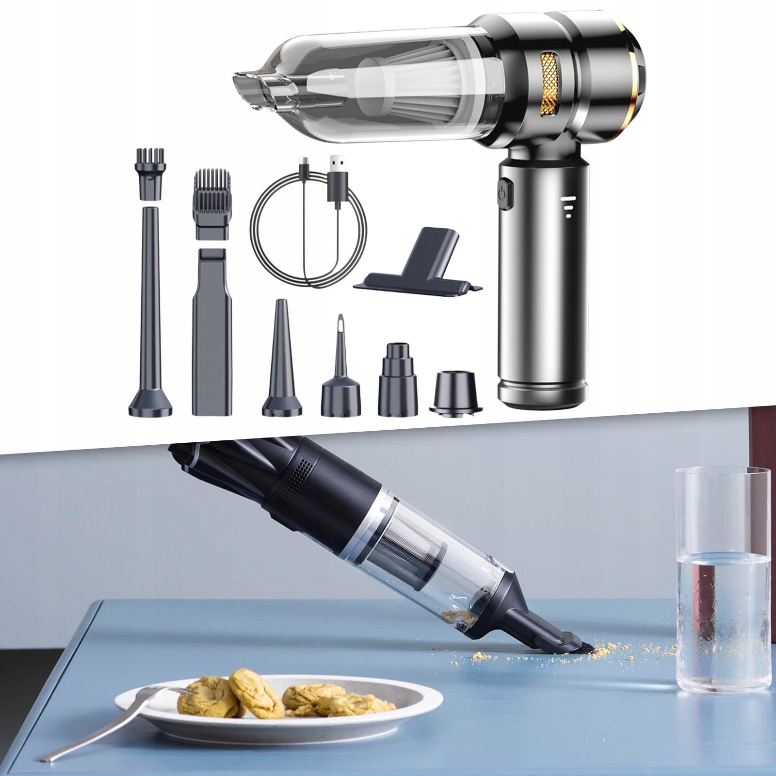 [Багатофункціональний]: Легке очищення килимів, підлоги та елементів дизайну інтер'єру з цим ручним пилососом. Це не просто пристрій, його також можна використовувати вдома.