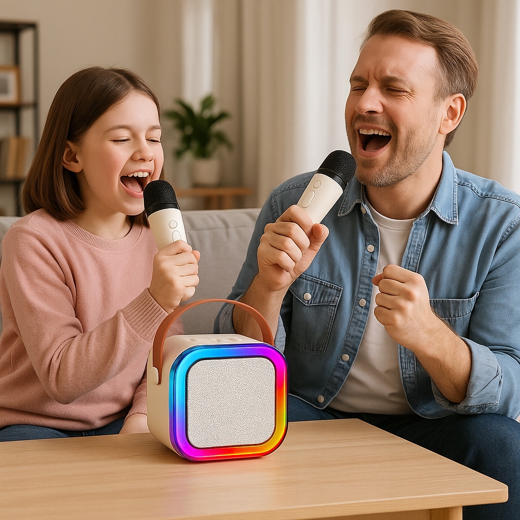 - ⭐ Кольорове світлодіодне підсвічування - додає візуальний ефект і створює ідеальну атмосферу для караоке, покращуючи музичні враження.