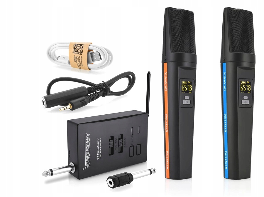 Набір ручних мікрофонів — це новий спосіб бездротового звукопідсилення. Разом з мікрофонами ми отримуємо JACK stick, який виконує роль мікрофонного приймача UHF і Bluetooth. Це рішення можна використовувати практично в будь-якому пристрої з мікрофонним входом. Установка дуже проста - просто підключіть джойстик до мікрофонного входу пристрою, наприклад, динаміка або мікшера. Приймач можна сполучити з іншим пристроєм через Bluetooth, що дає нам можливість відтворювати музику, наприклад, зі смартфона під час використання мікрофонів, використовуючи лише один пристрій. Вбудований фільтр вітру дозволить вам використовувати мікрофон без використання додаткової губки без втрати якості звуку.