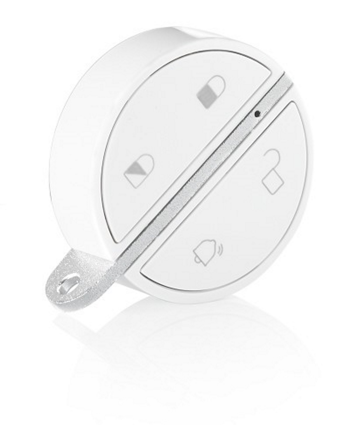 Зручно встановлюйте та вимикайте будильник. Брелок - безконтактна клавіша дозволяє вмикати та вимикати будильник без рук. Somfy Home Alarm розпізнає користувача на основі безконтактного ключа. Його можна легко приєднати до ключів, а в екстрених випадках також можна використовувати як кнопку антипаніки.