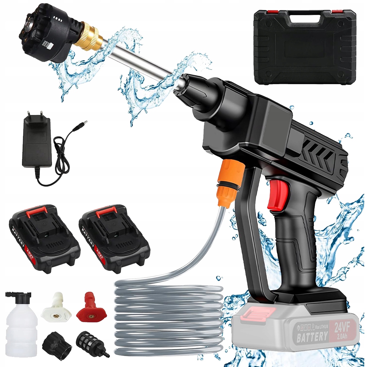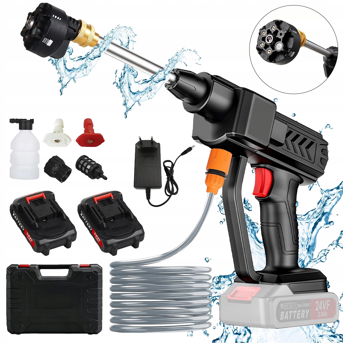 300 Вт, шайба з акумулятора 24 В, шайба з портативним тиском, 6 на 1, багатофункціональна насадка з 2 батареями для автомобілів, вікон, газонів, садів, басейнів (чорний)