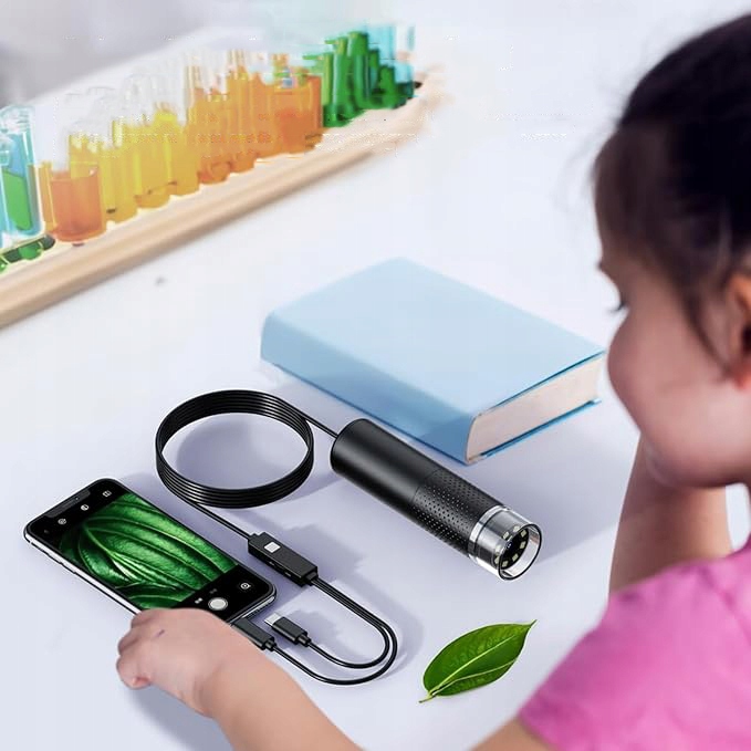 Цифровий бездротовий мікроскоп, 10x-200x USB 1080p HD Портативна кишенькова мікроскопів з 8 світлодіодними світильниками