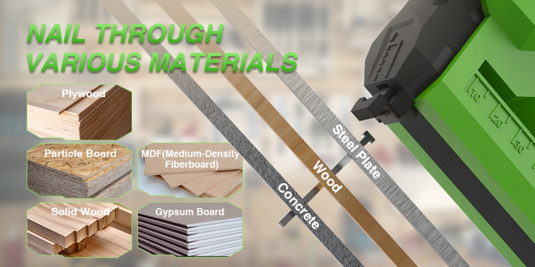 • Можливість прибивати цвяхи через різні матеріали (фанера, ДСП, МДФ, масивна деревина, гіпсокартон тощо).