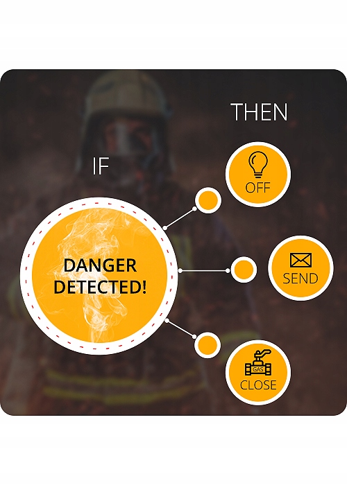 Використовуйте розумний датчик, щоб запрограмувати сценарій безпеки. Детектор можна підключити до інших Smart-пристроїв, щоб за потреби ви могли автоматично вмикати кондиціонер.