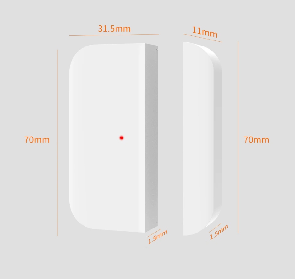 - Електроживлення: Датчик живиться від 2х батарей CR2450, датчик маєфункції виявлення низького заряду батареї. Він сповістить вас, коли він вичерпається, ви отримаєте сповіщення в додатку під час сполучення датчика з системою сигналізації в екосистемі Tuya.