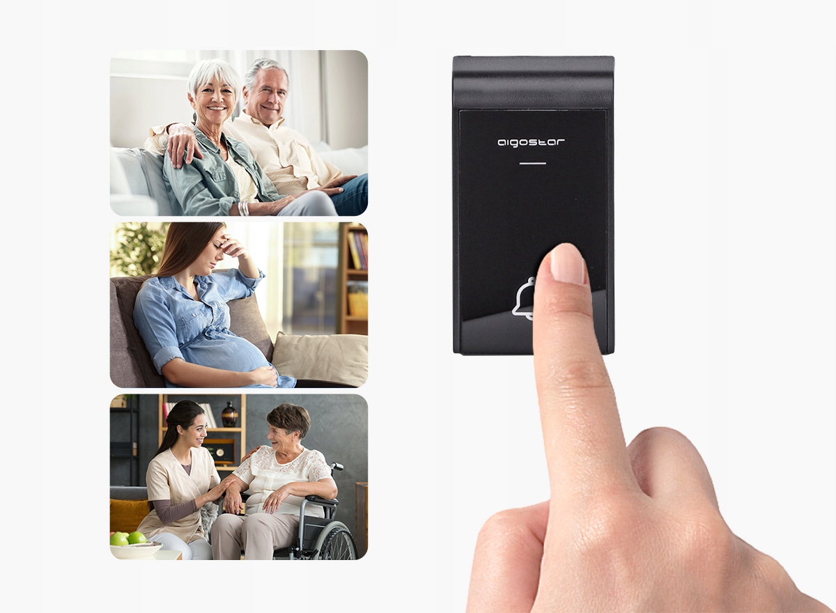 Це не тільки дверний дзвінок, а й радіоприймач для виклику людей, невеликий розмір з багатьма функціями, підключення однією кнопкою, зручний для догляду за рідними, літніми/хворими/вагітними жінками.