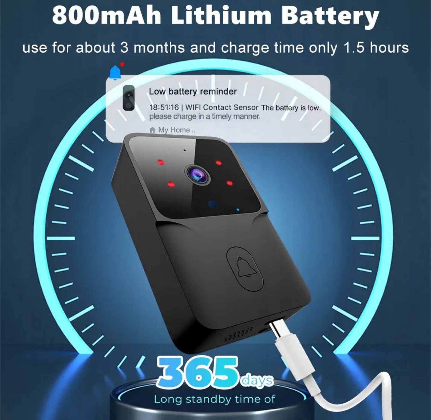 ❇️Низьке енергоспоживання та тривалий час очікування: бездротовий дверний дзвінок нічного бачення з ІЧ-випромінюванням має низьке енергоспоживання та тривалий час очікування, забезпечуючи надійну роботу протягом тривалого часу, заряджаючи за допомогою звичайного зарядного пристрою займає до 2 годин кожні кілька або кілька місяців - дуже легко розібрати для заряджання - інструменти не потрібні!!