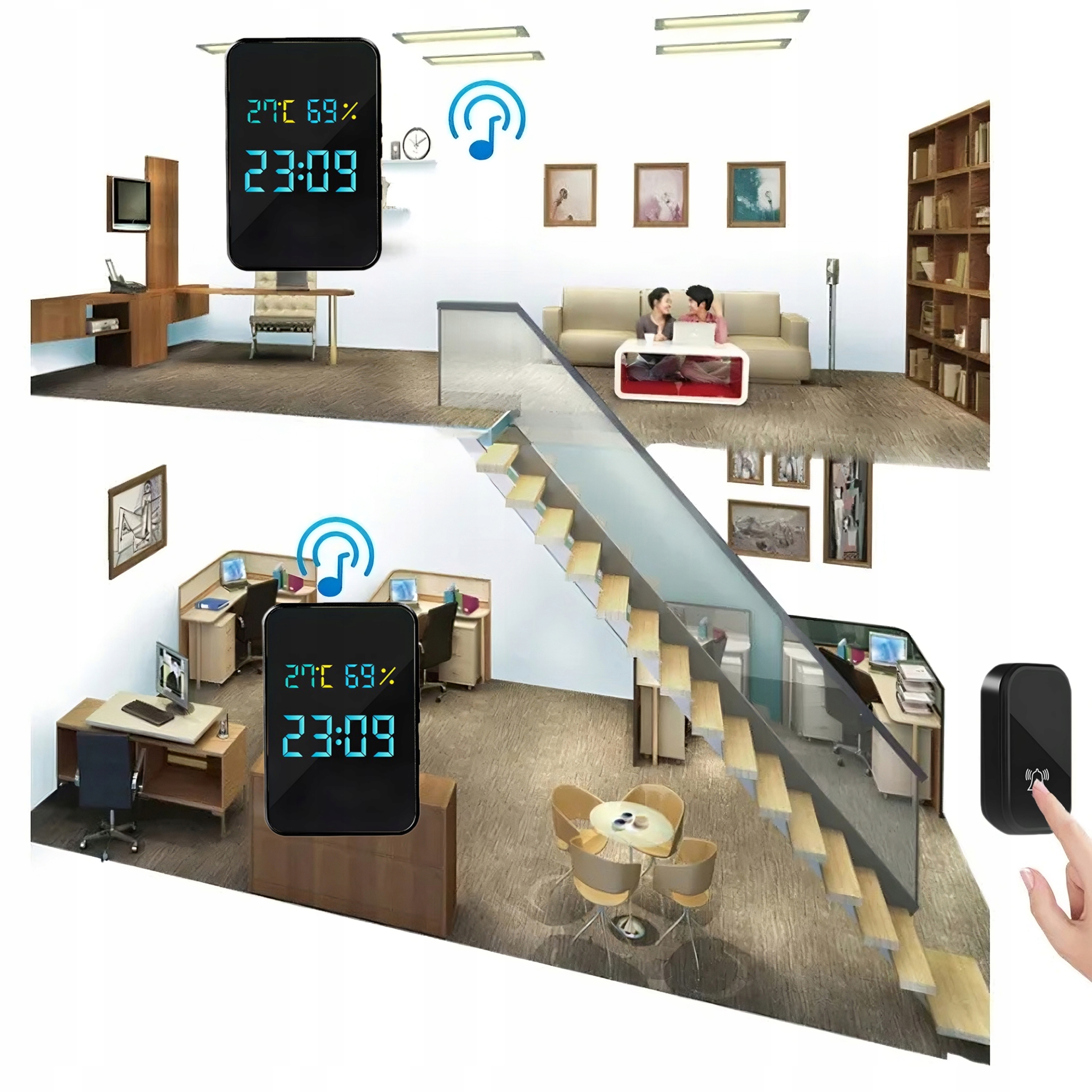 ✔️Багатофункціональність - Бездротовий дзвінок має регулятор гучності, 38 мелодій, підсвічування, індикатор температури.