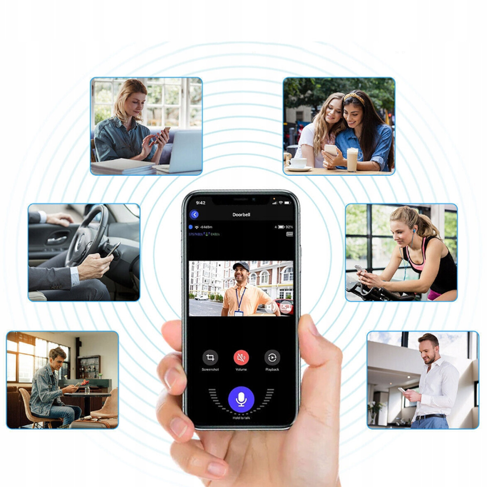 Розумний дверний дзвінок, просто завантажте APP TUYA та підключіться до свого телефону за допомогою Wi-Fi 2,4 ГГц, і наш пристрій можна підключити до Wi-Fi навіть за дверима або через кілька стін з надійною передачею з'єднання та потужним сигналом. Він сумісний із системами iOS та Android. Ви можете поділитися зображенням з 10 людьми одночасно. Якщо перегляд незручний, ви можете поділитися ним із родиною чи друзями.