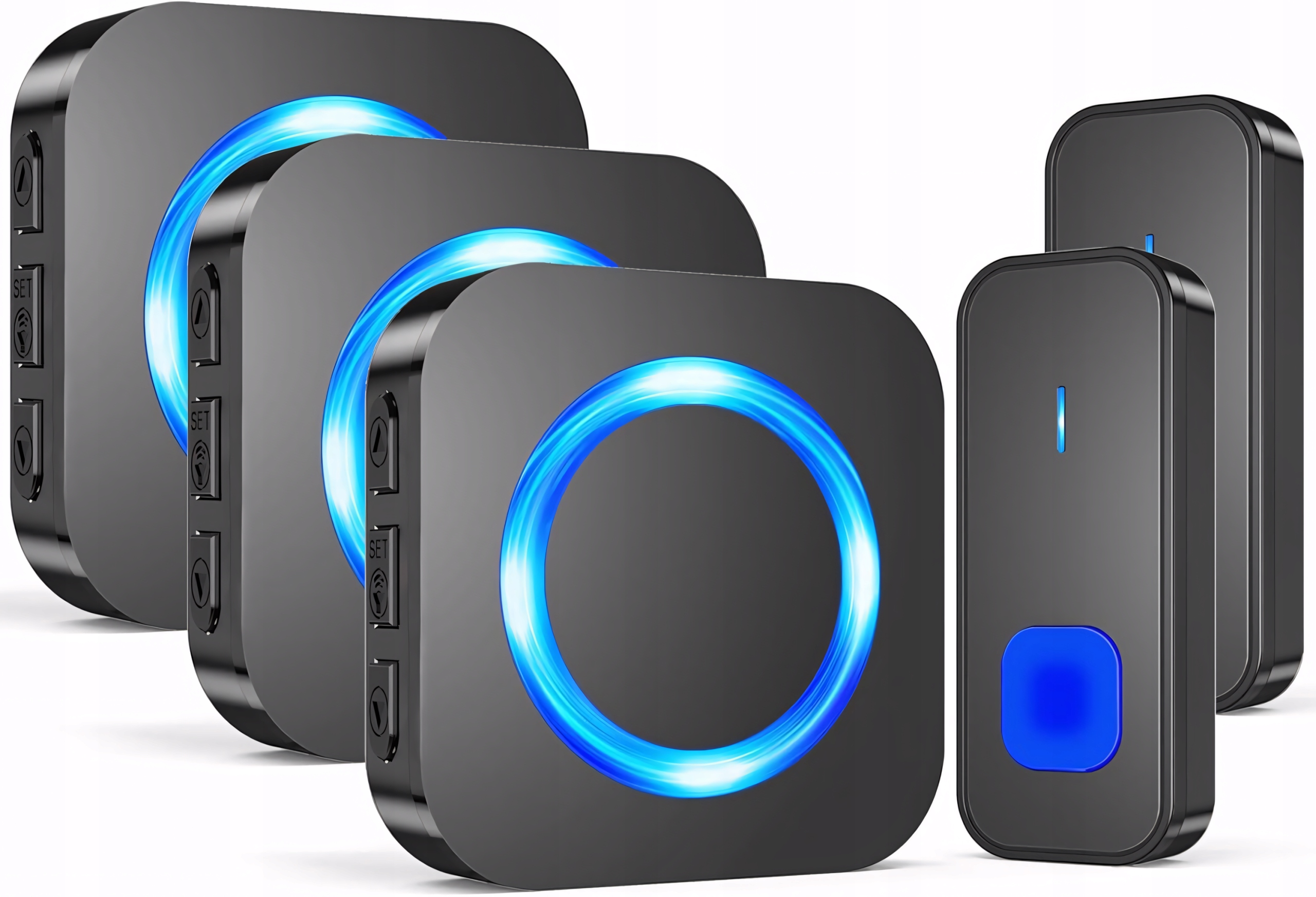 Не пропустіть нікого гостя! бездротовий дзвінок для дверей з діапазоном до 400 м надасть надійні сповіщення, незалежно від того, де ви знаходитесь вдома. Завдяки трьох приймачах та двом передавачам Ви маєте повний контроль над сповіщеннями - ідеальне рішення для великих будинків, офісів або комунальних будівель.