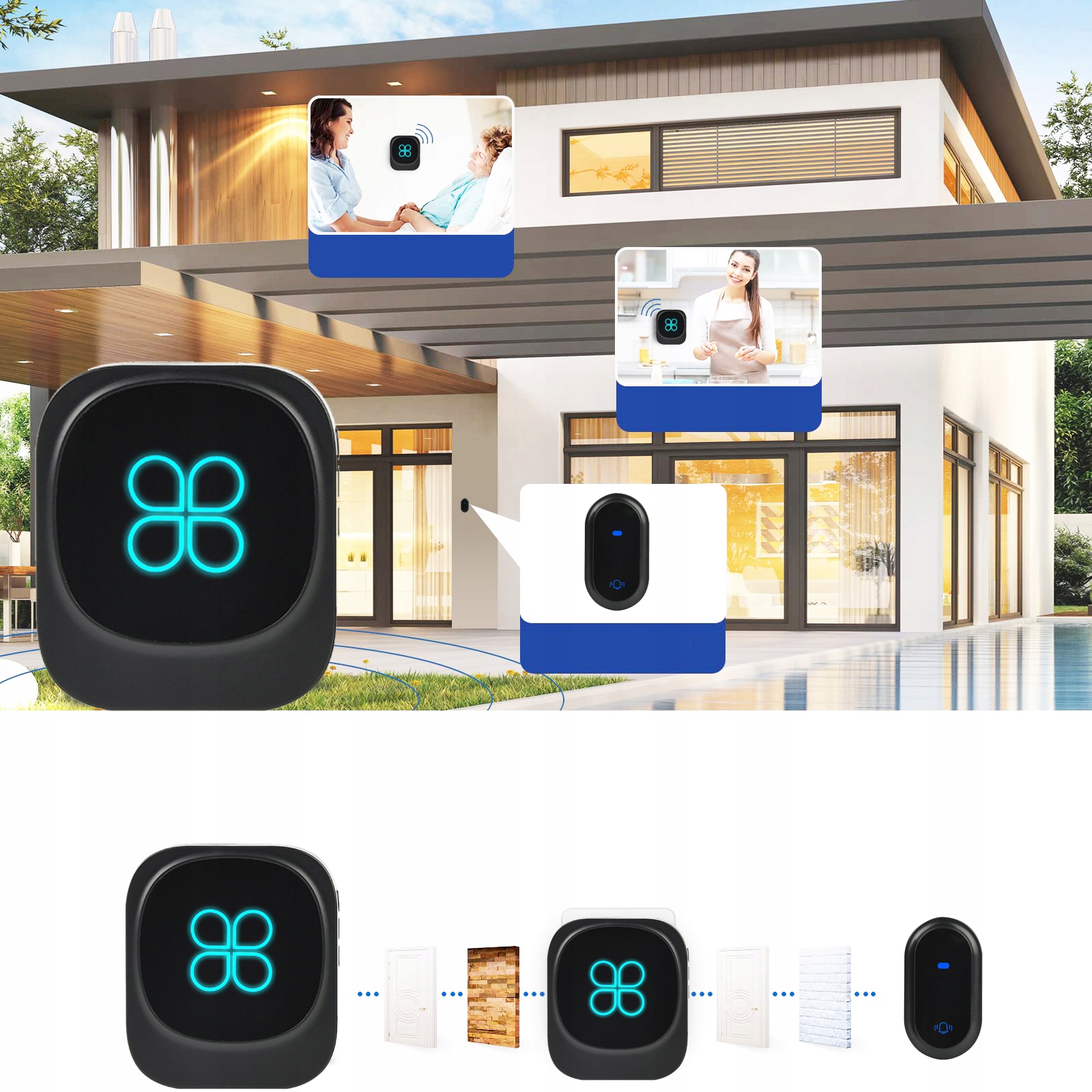 у відкритих просторах і прикріпити передавач до стіни за допомогою постачальників, включаючи шматок клейкої стрічки. Наш дзвінок для дверей підходить для будинку, квартири, школи, будинків у сільській місцевості, офісі тощо. Цей дзвоник бездротового двері без акумулятора - це приємний подарунок на Різдво, день народження чи ювілей для кожного будинку чи власника компанії.