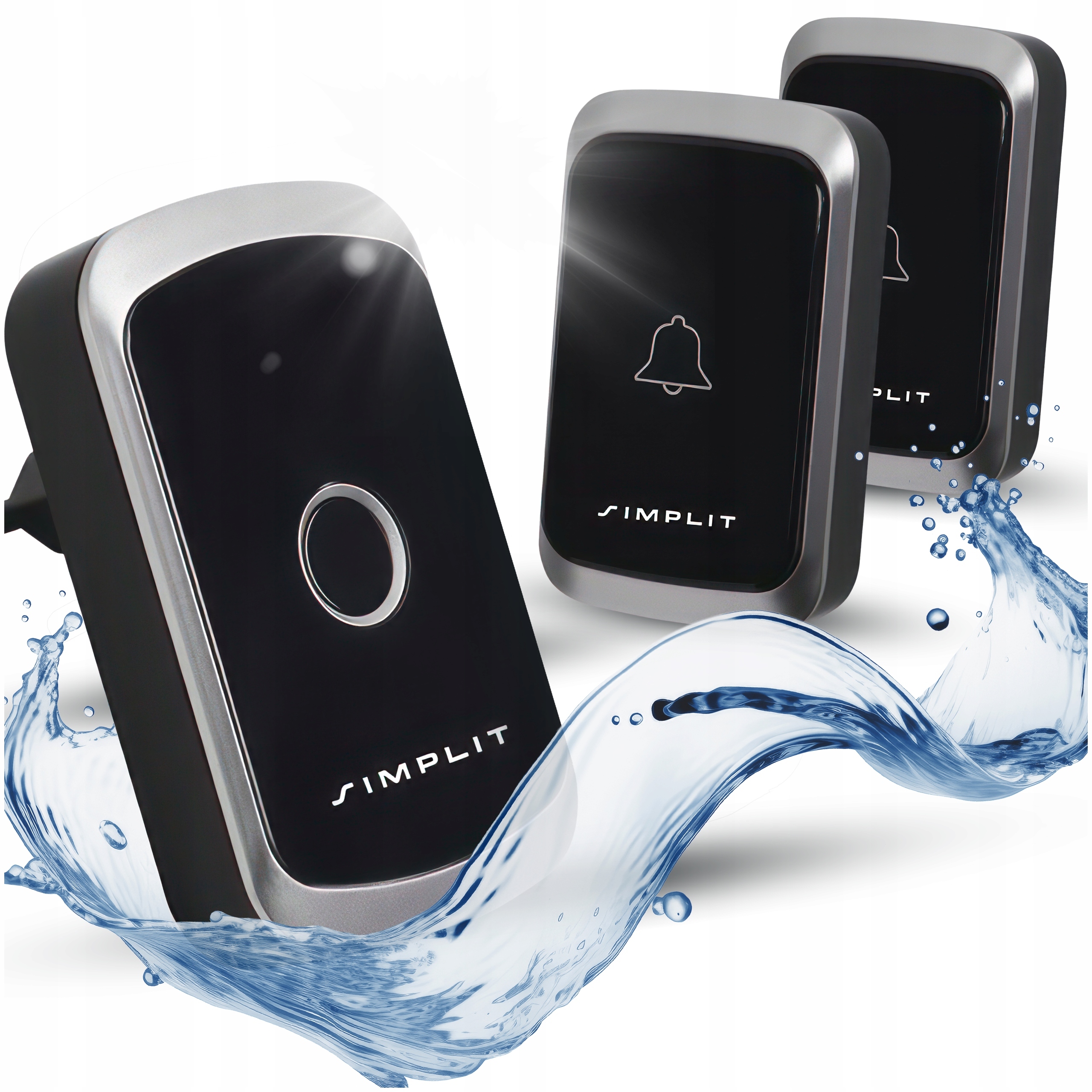БЕЗДРОТОВИЙ ДЗВІНОК ДЛЯ ДВЕРЕЙ SIMPLIT + 2x ПЕРЕДАВАЧ А2 ВОДОНЕПРОНИКНИЙ IP44