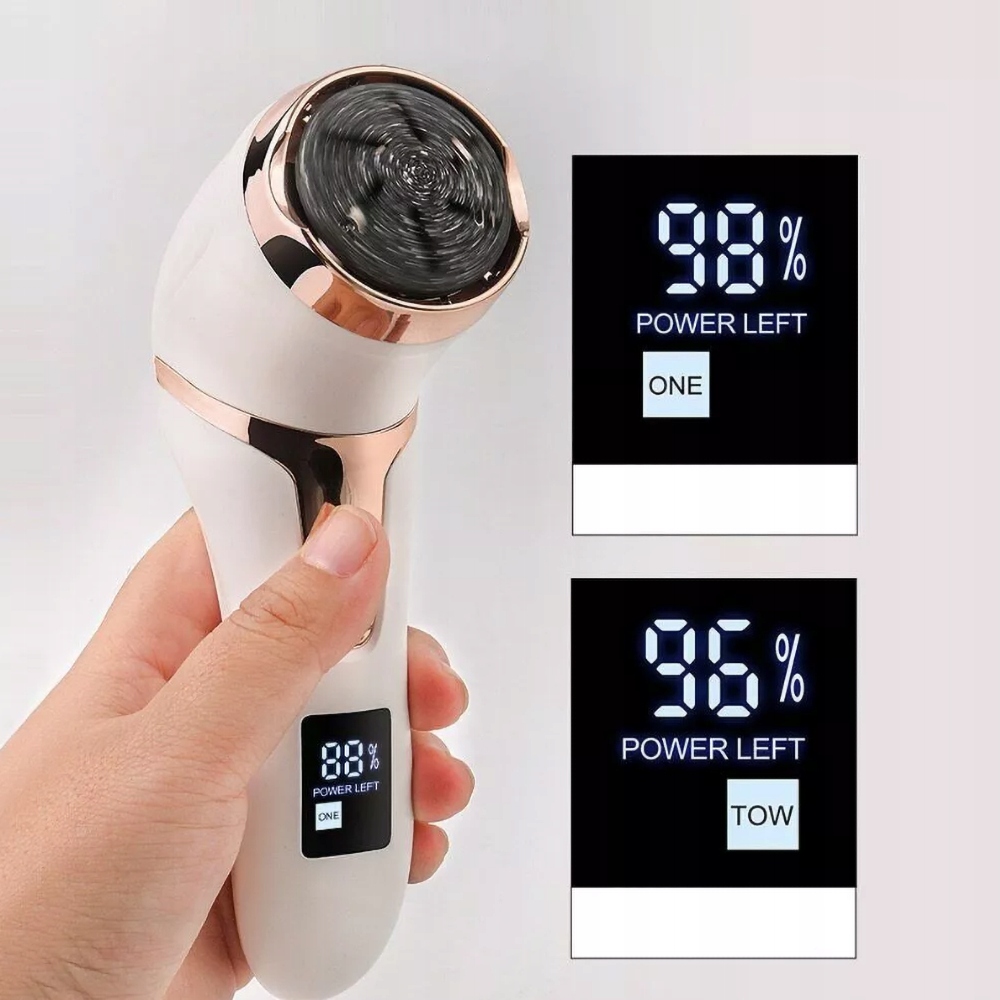 - Вбудований акумулятор 1200 мАг, заряджений через USB, завантажується за 3 години і дозволяє отримати близько 100 хвилин безперервного використання. РК -дисплей дозволяє побачити рівень заряду акумулятора, що залишився. Бездротова конструкція дозволяє використовувати електричний пристрій для видалення мозольованого епідермісу на подорожі.