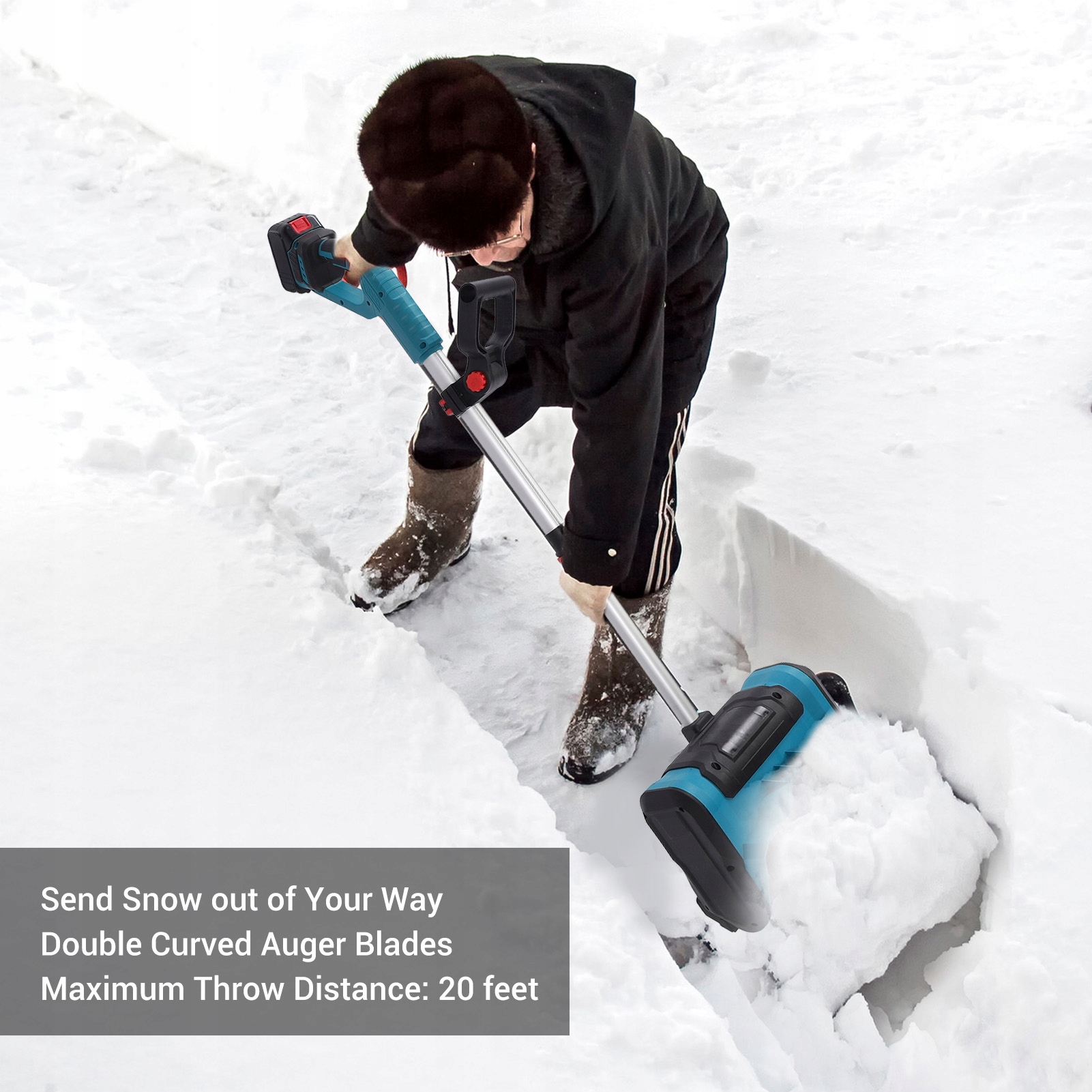 2. Потужна продуктивність: Цей суцільний 21 -вольтовий електричний сніговий лопат має безщітковий двигун і оснащений 2 батареями та 1 зарядним пристроєм для ефективного снігу, міцно поширюється.