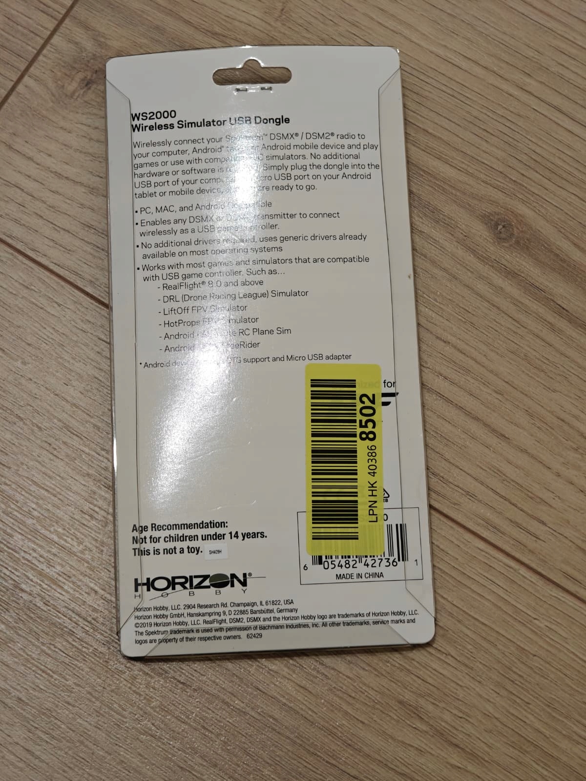 Бездротовий інтерфейс V2 WS2000 для USB-порту комп’ютера або мобільного пристрою Android сумісний із передавачами Spektrum DSM2/DSMX. Після підключення до комп’ютера буде створено ігровий контролер, який потім можна використовувати для керування широким спектром дистанційних симуляторів (наприклад, Real Flight 8+, Real Flight9, DRL (Drone Racing League) і LiftOff FPV, FMS тощо). Симулятор використовує стандартні драйвери HID, які включені в поточні операційні системи (Windows, Linux, Android, Mac). Процедура встановлення
