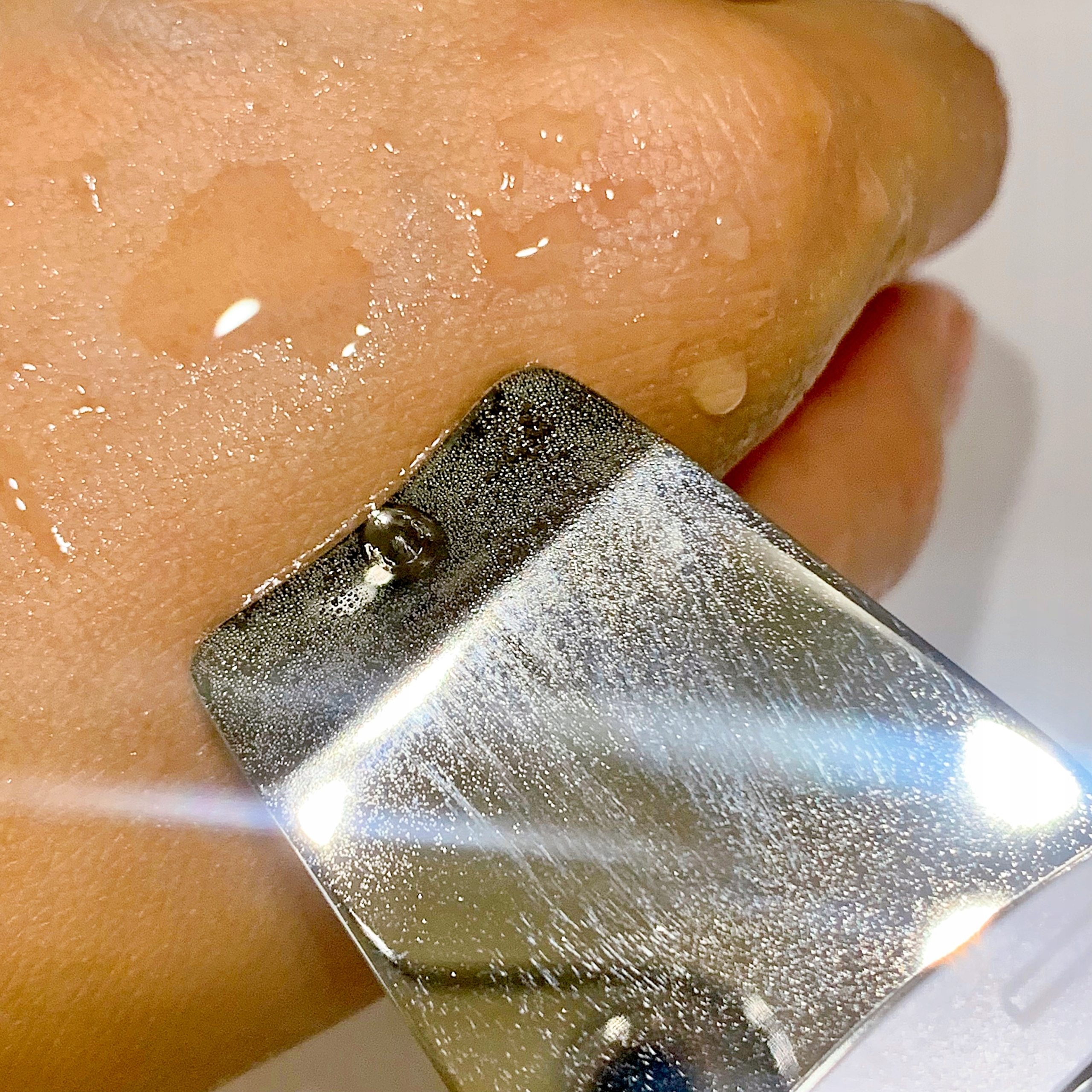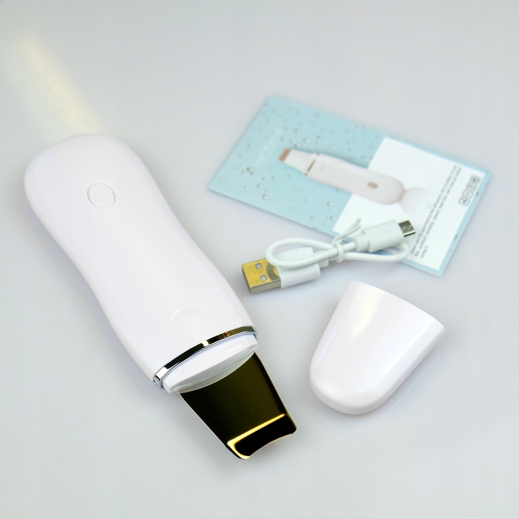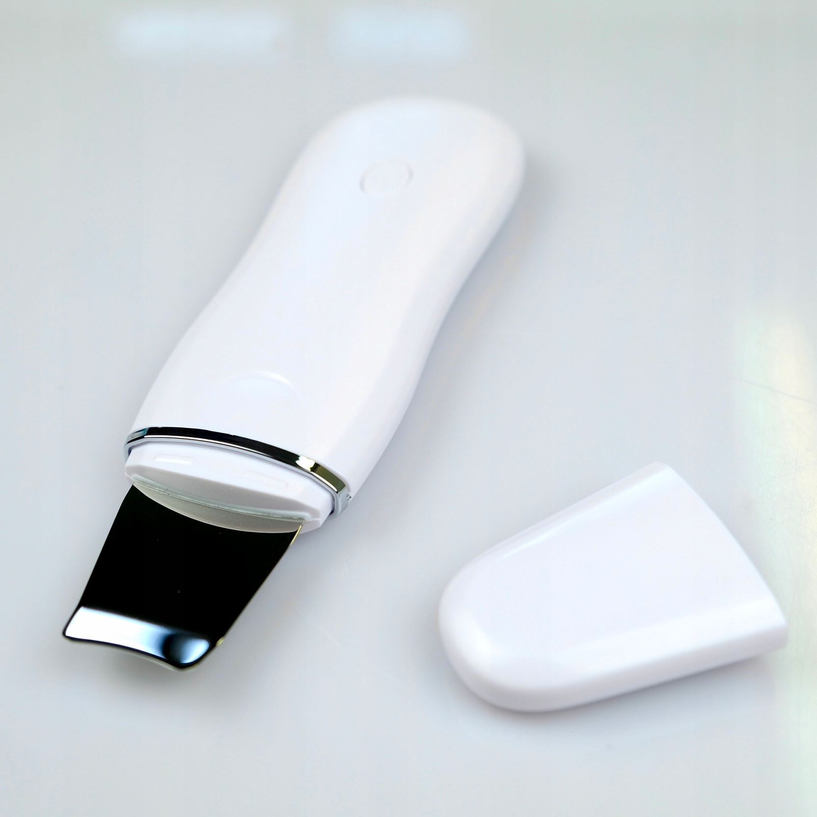 Просто проведіть шпателем приладу по вологій поверхні шкіри обличчя, щоб ультразвук очистив шкіру!