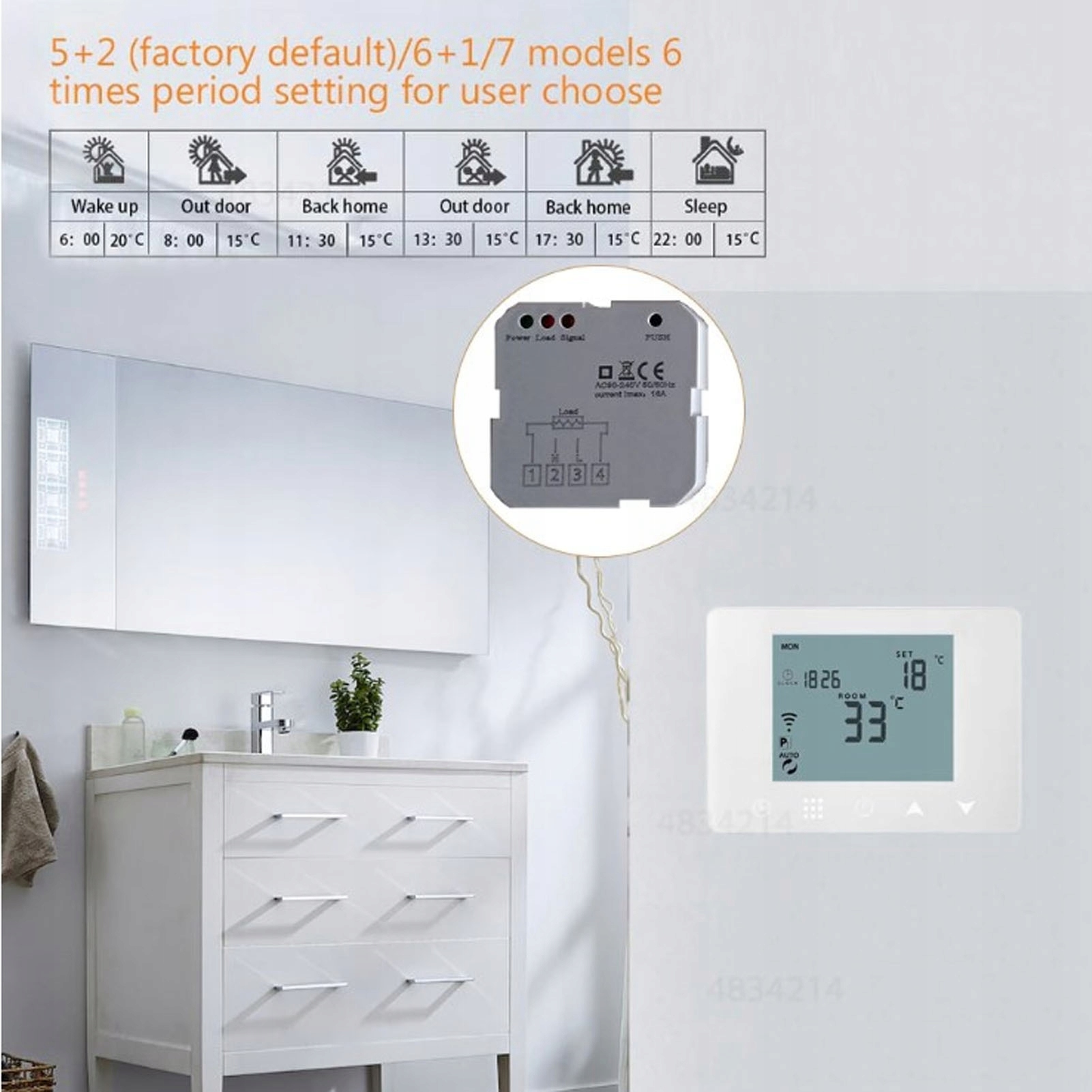 1, ДИСТАНЦІЙНЕ КЕРУВАННЯ: підключіться до програми Tuya, для Smart Life, для програми RM, щоб віддалено контролювати температуру вдома, де б ви не були. 2, ПРОГРАМОВАНИЙ: підтримує повністю автоматичні програми або ручне налаштування тижневих розкладів, забезпечуючи максимальну зручність у різних ситуаціях. 3, ГОЛОСОВЕ КЕРУВАННЯ: Термостатом можна керувати голосом, і він дуже інтелектуальний, щоб забезпечити найкомфортнішу температуру у вашому домі в будь-який час і в будь-якому місці. 4. СПІЛЬНИЙ ДОМІВ: ви можете спільно використовувати термостат зі своєю сім’єю, щоб разом контролювати температуру у вашому домі за допомогою програми для смартфона. 5, РК-ДИСПЛЕЙ: Термостат має цифровий РК-дисплей, який чіткий і легкий для читання, тож ви можете швидко перевірити кімнатну температуру.
