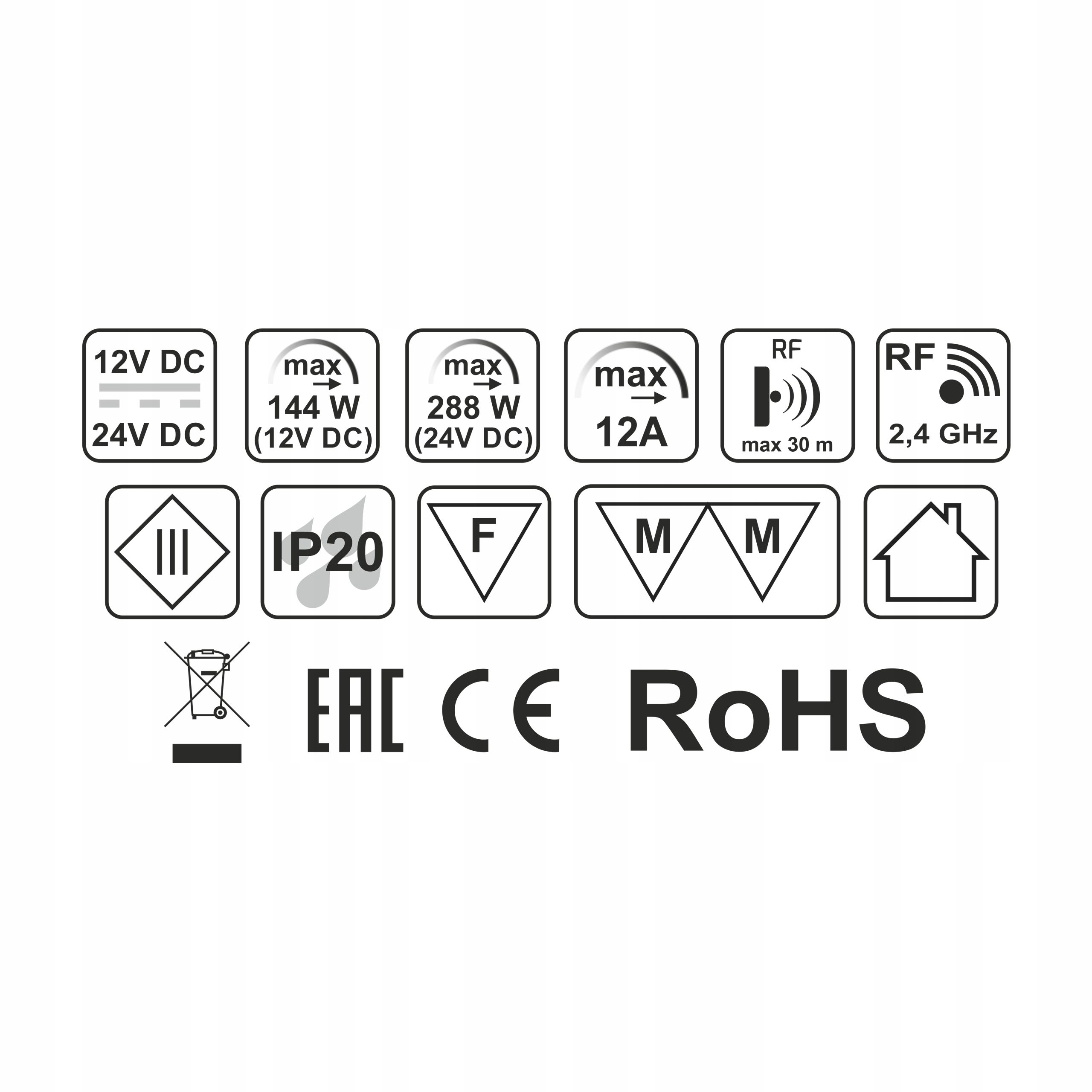 ✅ Живлення: макс. 144 Вт (12 В постійного струму) / 288 Вт (24 В постійного струму)