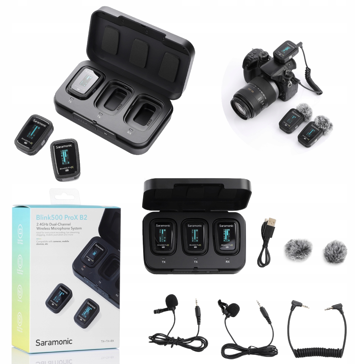 Saramonic Blink500 ProX B2 — це комплексний набір для бездротової передачі аудіо, що складається з приймача, 2 передавачів, футляра, який служить зарядною станцією, і необхідних аксесуарів. Надлегкі мікропорти ідеально підходять для інтерв’ю, репортажів, відеоблогів, прямих трансляцій, вебінарів, дистанційних лекцій або весільних зйомок.