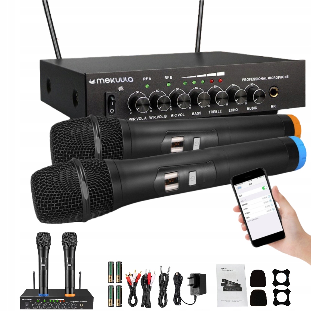 【Підходить для багатьох застосувань】 Бездротовий мікрофон із високими частотами, луною, басами та Bluetooth, UHF бездротова подвійна бездротова мікрофонна система для караоке-машин, ді-джеїв, співу, церков, весіль, колонок, підсилювачів, звукових систем