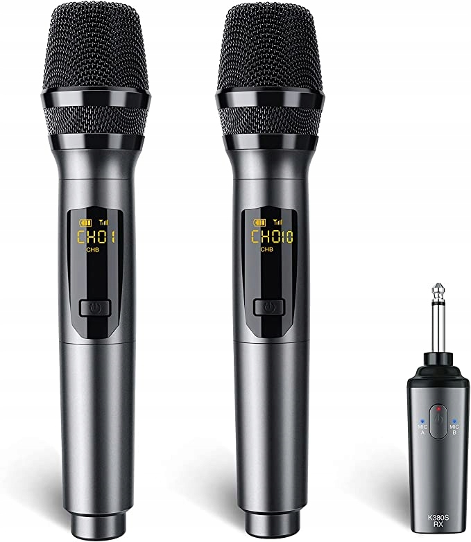 Бездротові мікрофони K380S мають металеву алюмінієву трубку, а сітчасту головку виготовлено з лаку для запікання металу, який безпечний, стійкий до падінь і міцний. Приймальна коробка підключається безпосередньо до стереосистеми та є портативною.