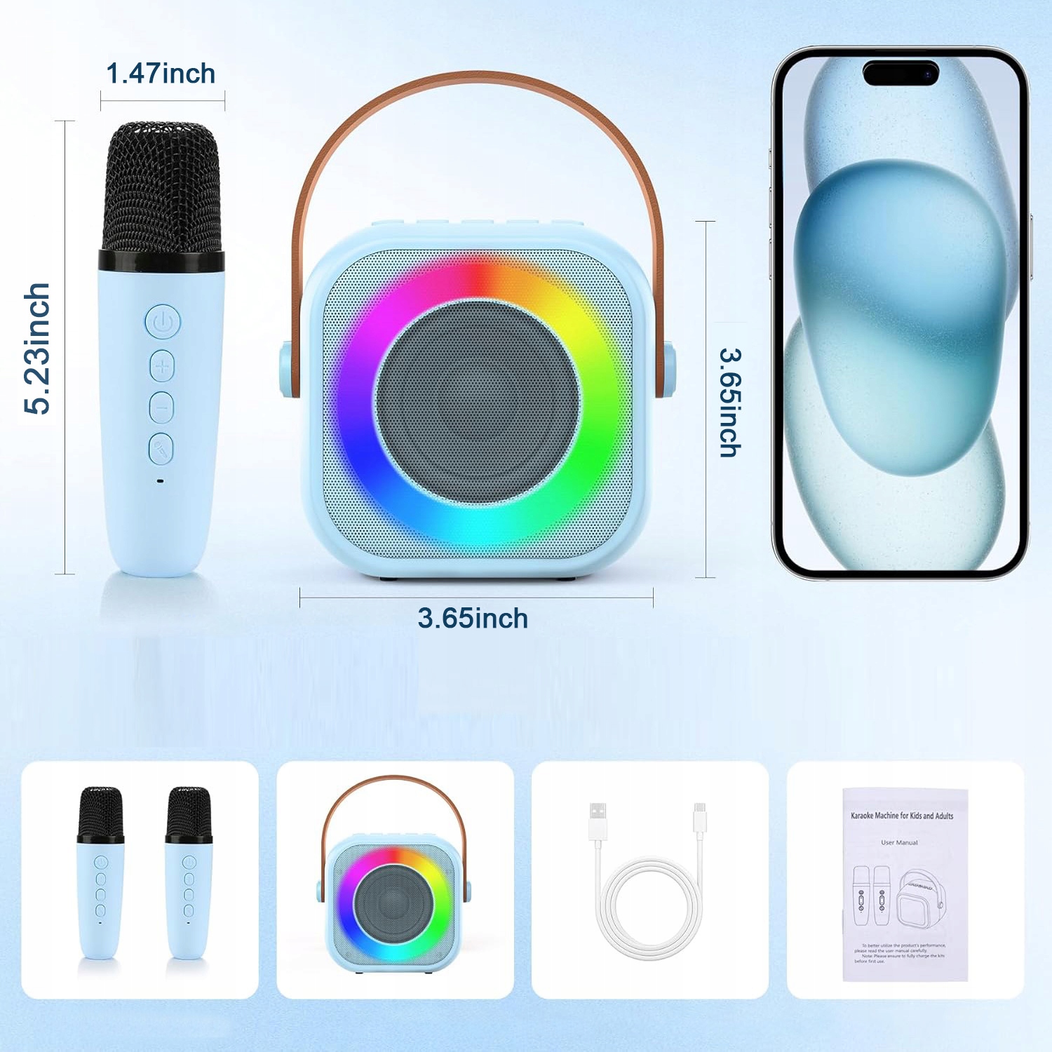 🎶Ємність акумулятора: динамік-1200mAh, мікрофон-400mAh