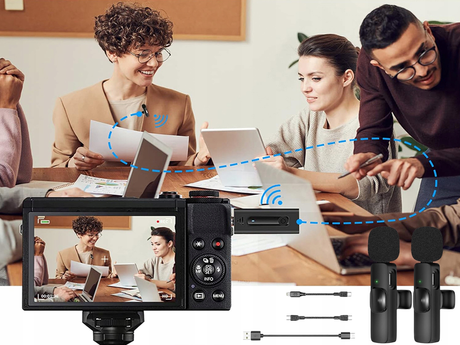 ✅ Цей набір подвійних бездротових петличних мікрофонів оснащено 2 передавачі та 1 приймач, ідеально підходить для запису відео 2 людей, які розмовляють та беруть інтерв’ю. Просто підключіть приймач Lightning до телефону та ввімкніть бездротовий петличний мікрофон, він спрацює за секунду (ви також можете використовувати набір мікрофон-приймач).