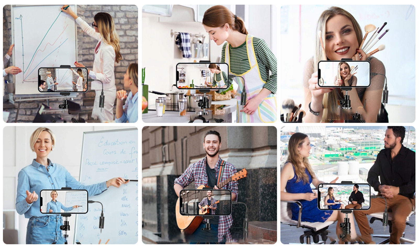 📷 Сумісний з iPhone/iPad, телефонами Android, камерами, ноутбуками та MacBook. Просто підключіть бездротовий мікрофон до нашийника, а приймач (роз'єм Lightning) до пристрою, і підключення відбудеться автоматично. Дуже підходить для окремих авторів, щоб вести інтерв’ю/vlog/youtube/facebook у прямому ефірі.