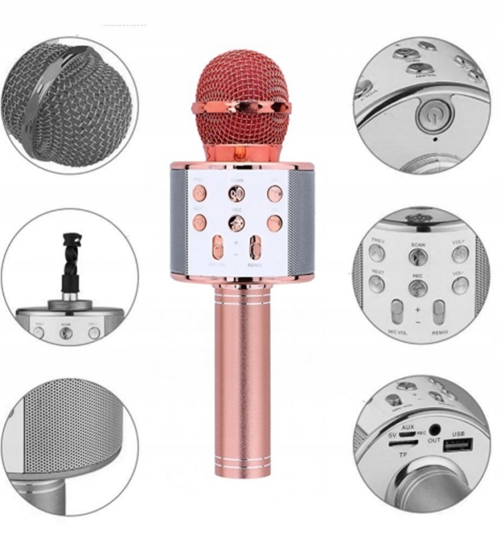 Мікрофон завдяки своєму потужному звуку поєднує звук пристрою, з якого відтворюється музика, із нашим співом.