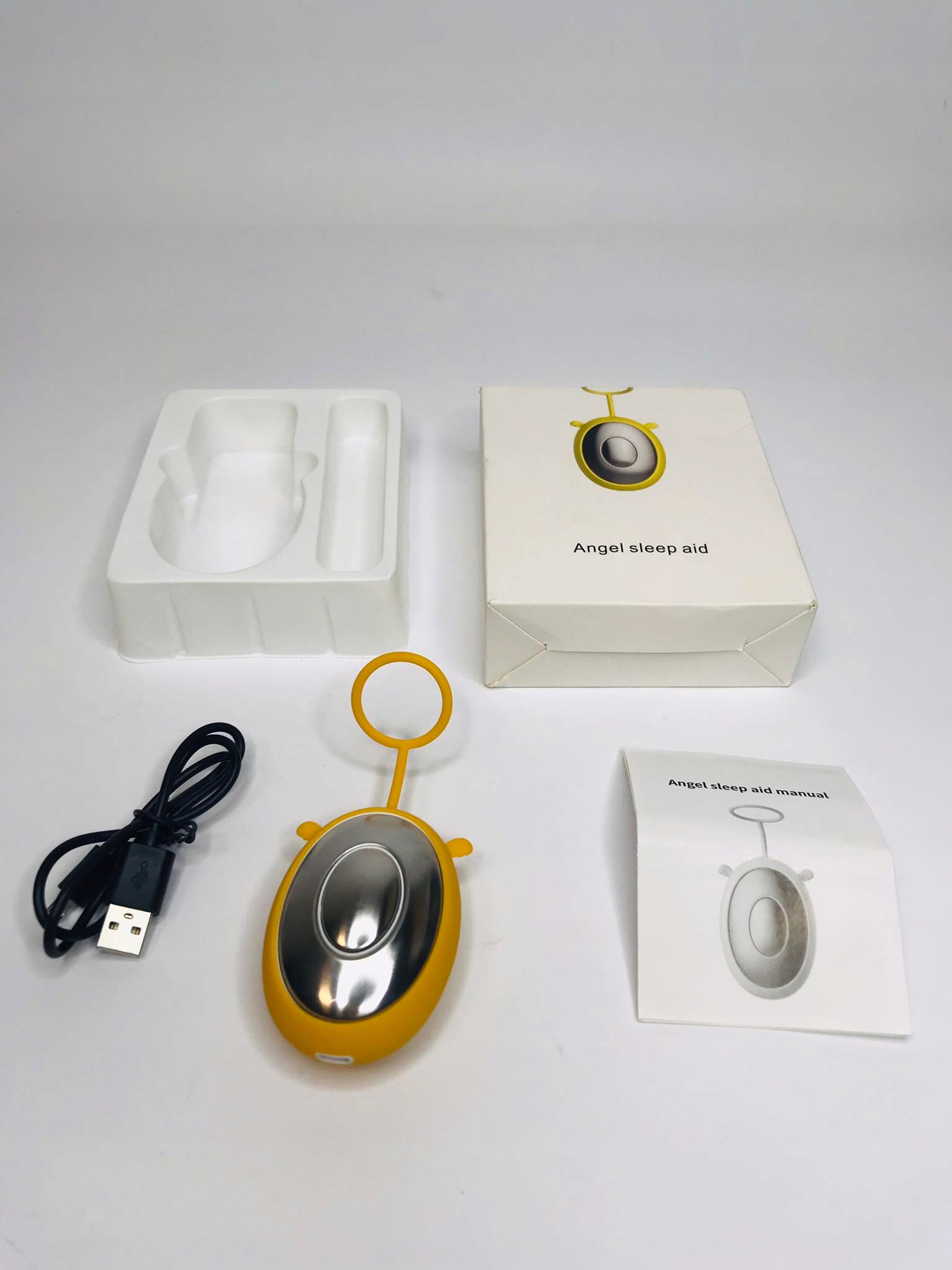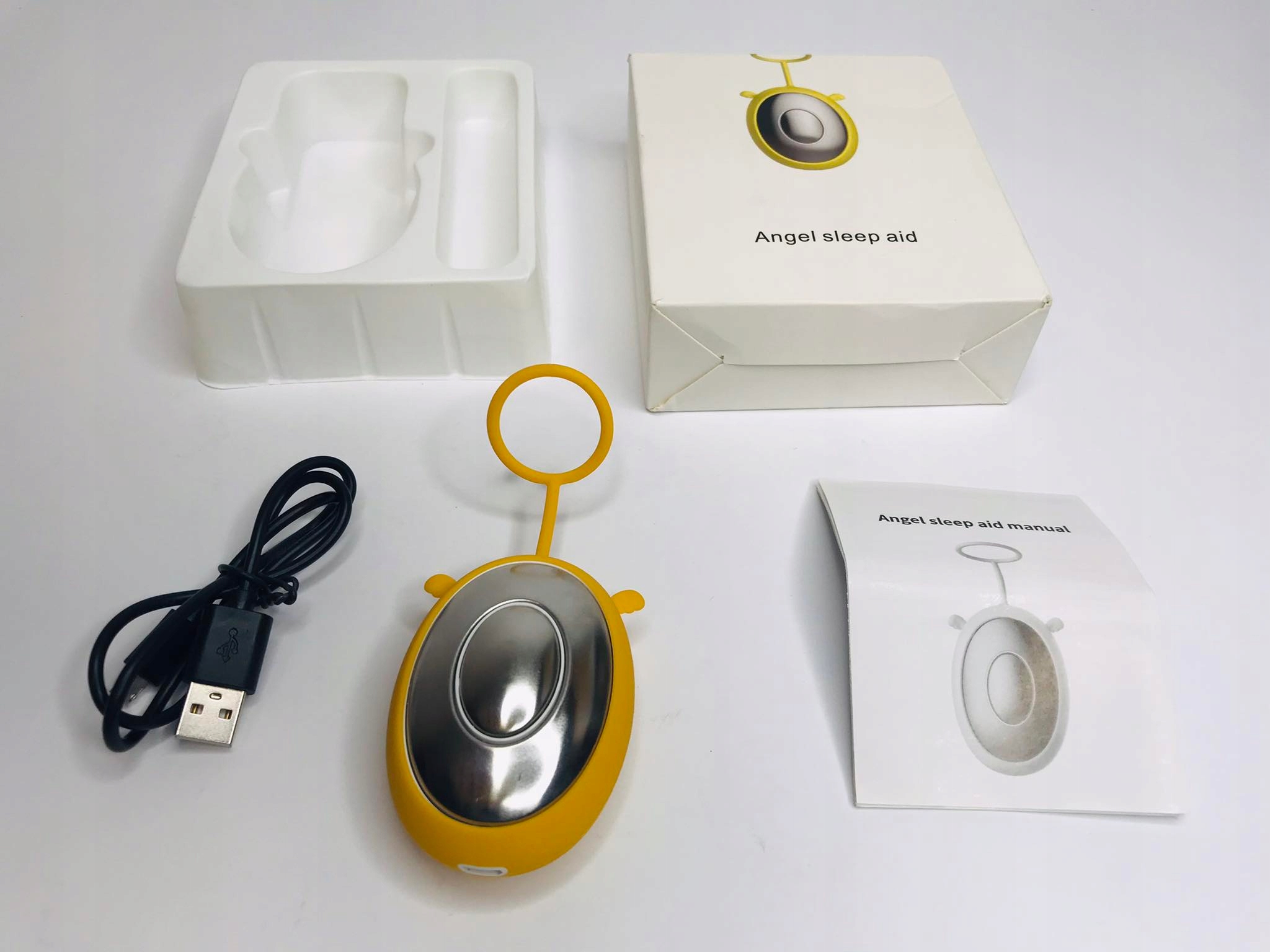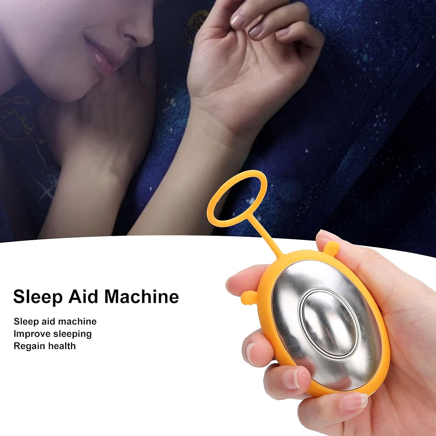 - Обережно тримайте снодійний пристрій, мікрострум надсилається в мозок через акупунктурні точки Laogong у руці, щоб створити заспокійливий і розслаблюючий ефект, який сприяє здоровому сну. Пристрій заряджається за допомогою кабелю, що входить до комплекту.