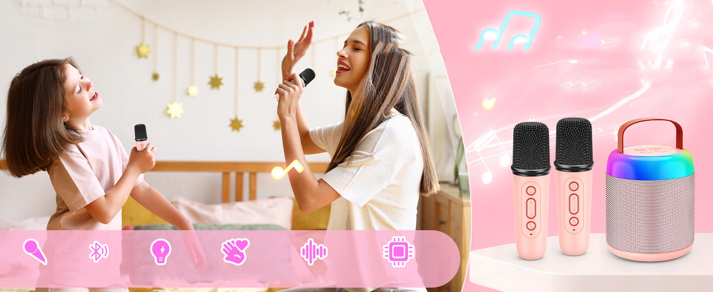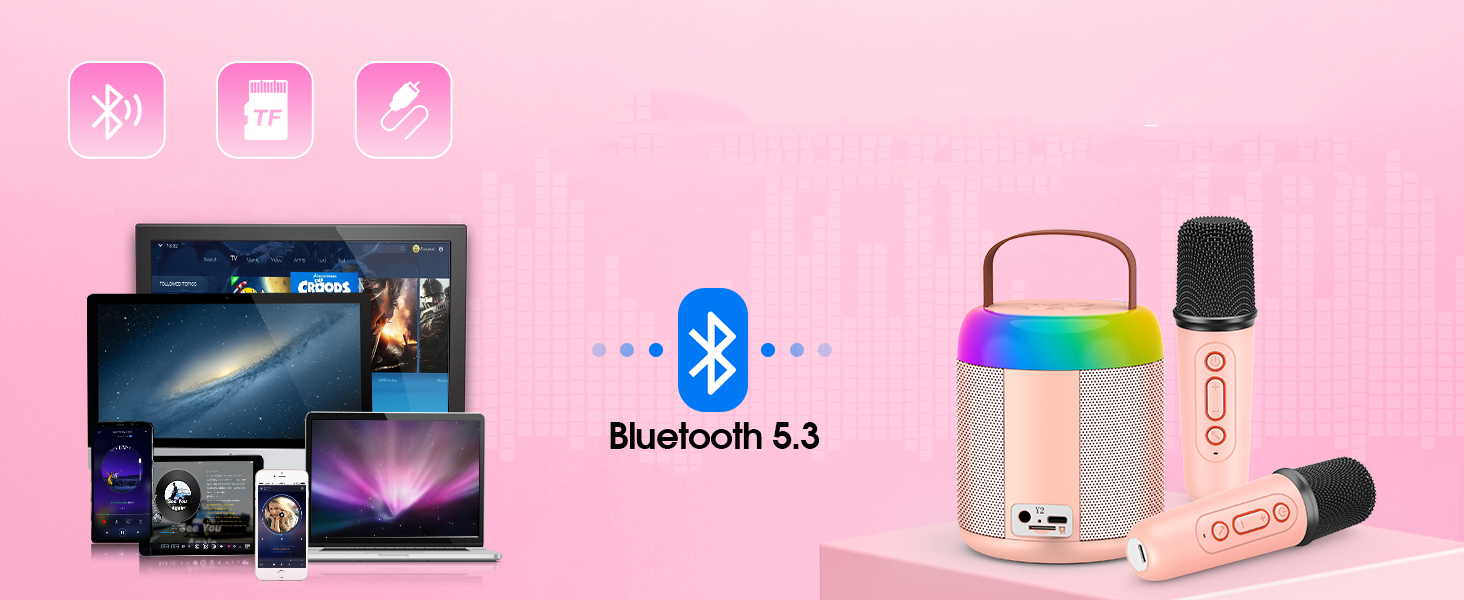 - Караоке-машина використовує найновіша технологія Bluetooth 5.3, що забезпечує миттєве сполучення, забезпечує стабільнішу передачу даних і більшу відстань.