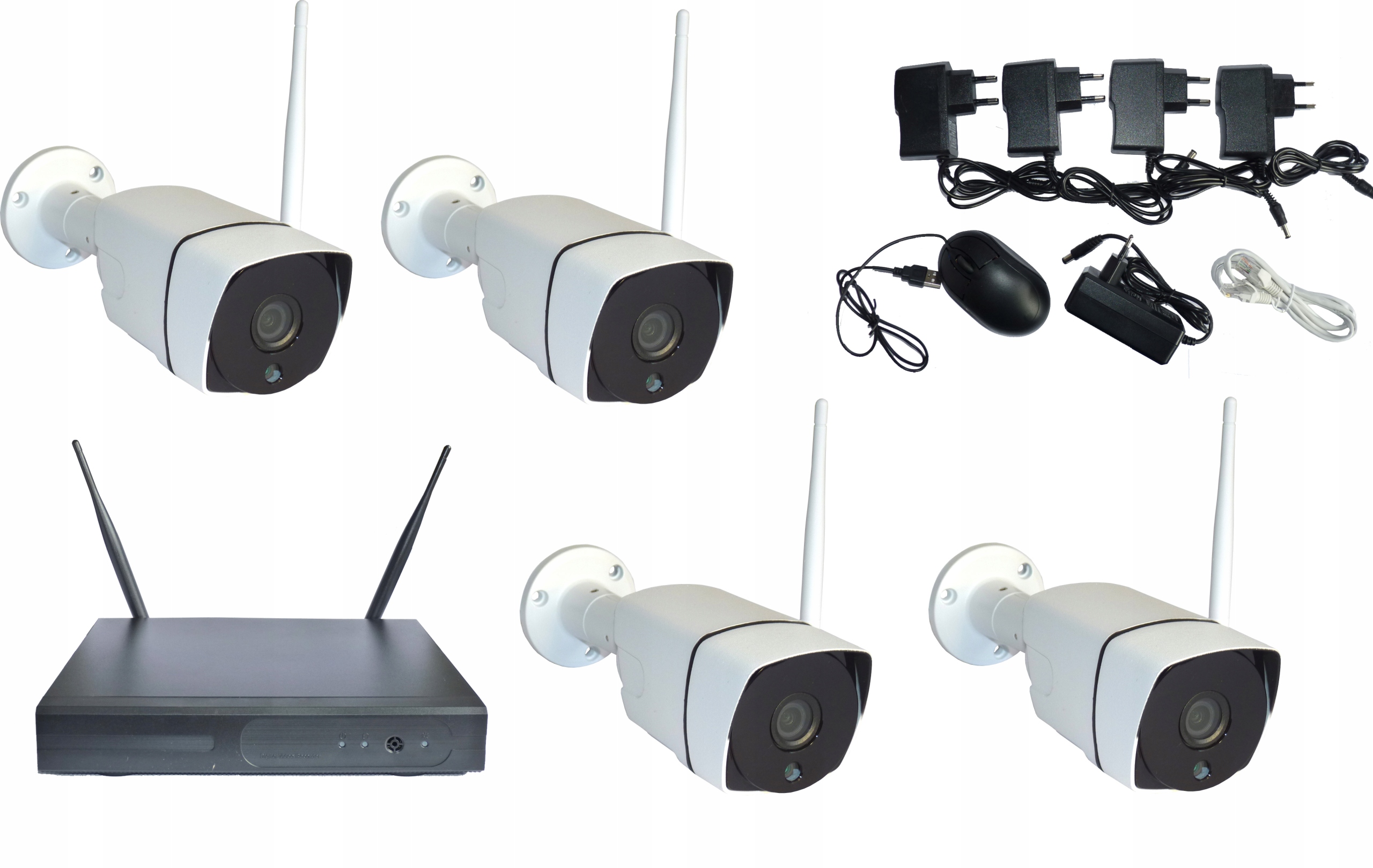 Представлений набір складається з 4 HD бездротових камер та реєстратора. Камери вже поєднуються з диктофоном, тому, щоб отримати зображення, все, що вам потрібно зробити, це підключити все до електроенергії - це все!