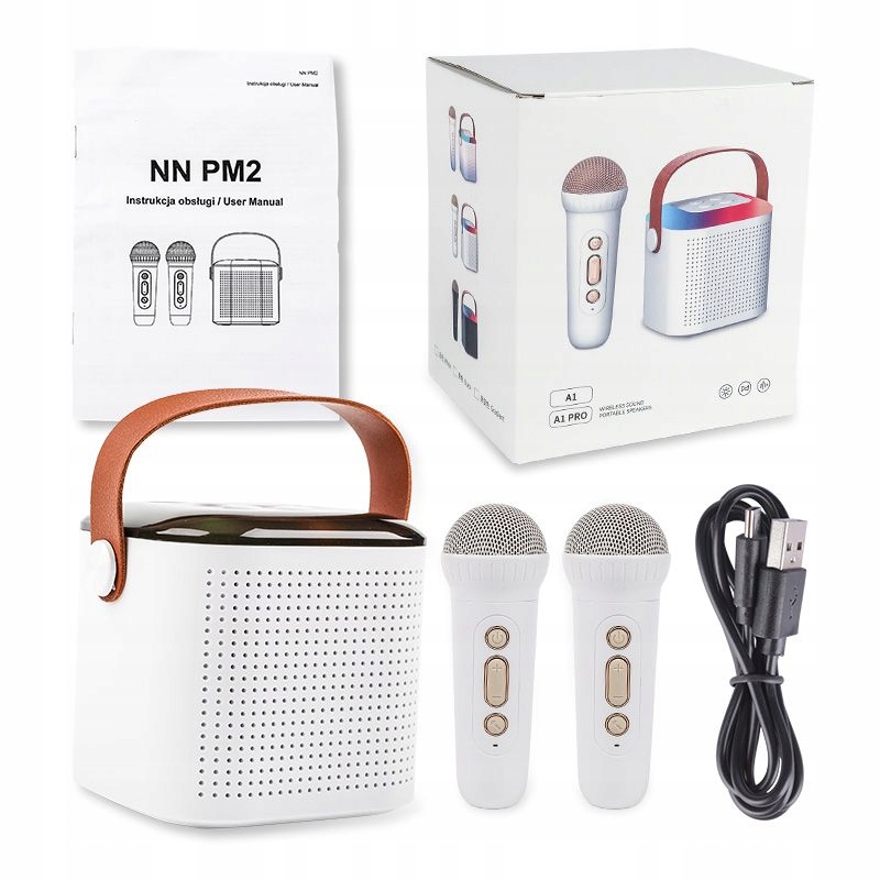 PM2 - це універсальний ✅ бездротовий набір для караоке з двома мікрофонами, портативною колонкою b>, підтримка Bluetooth, порт TF (microSD) і вихід AUX, що ідеально підходить для >дитячі ігри, відпочинок, вогнища, домашні вечірки, вечірки та вечірки з друзями. Завдяки вбудованим ефектам і простому управлінню обладнання гарантує велике задоволення для всіх. Завдяки тому, що в комплект входять два мікрофони, караоке-вечірка можлива не тільки в режимі соло, а й удвох , що гарантує ще більше задоволення. Додатковою перевагою цього караоке-набору є його унікальний елегантний дизайн.