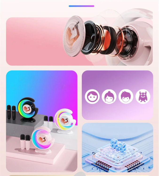 Спільний спів із друзями — чудовий спосіб добре провести час і створити чудові спогади. Завдяки цьому набору ви можете слухати музику, що лунає з колонки, або організувати незабутнє караоке за допомогою зручного мікрофона. 4 ефекти модуляції голосу змусять вас дуже сміятися!