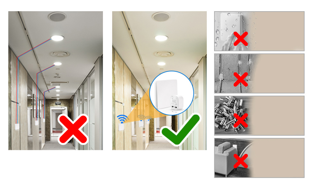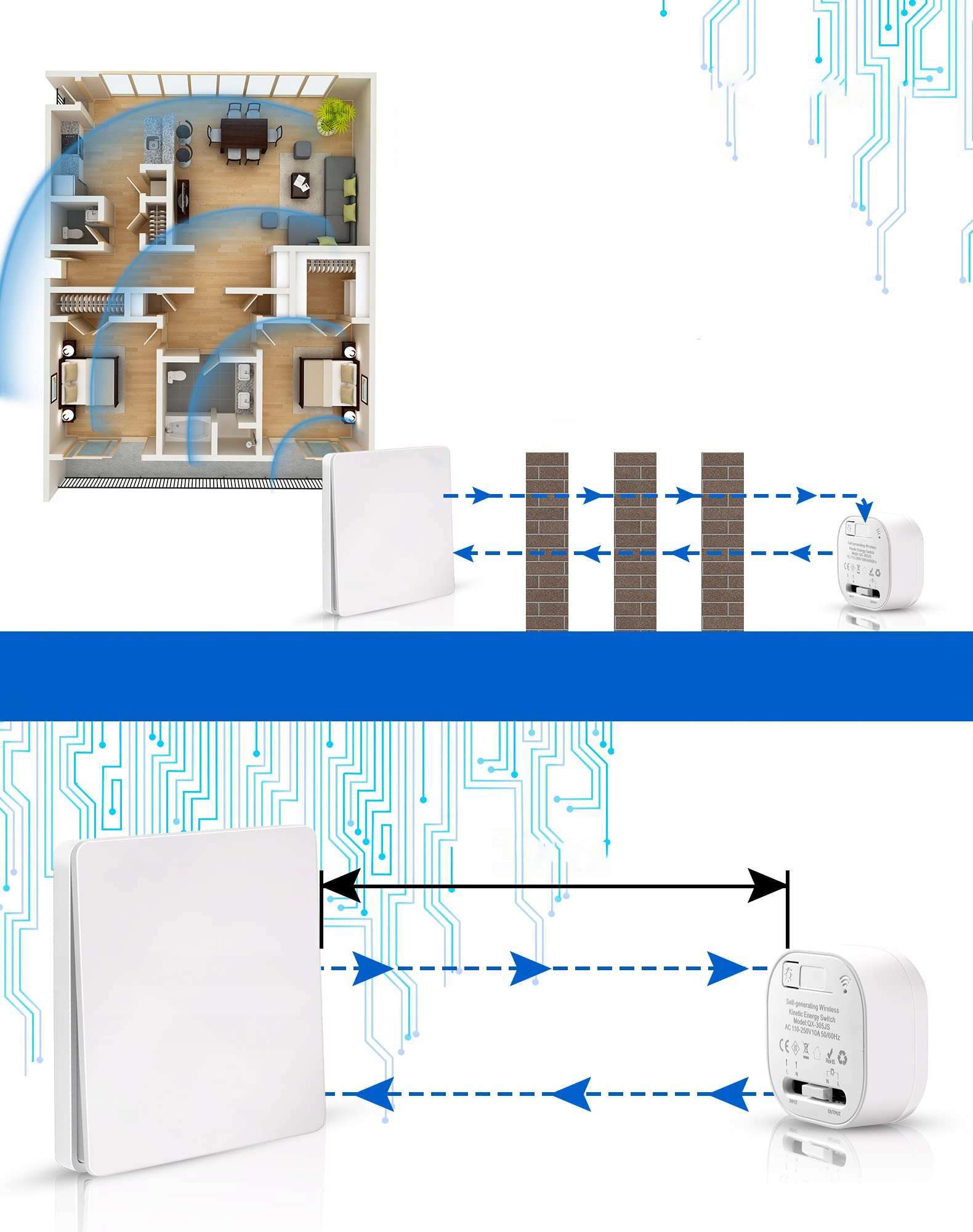 БЕЗДРОТОВИЙ НАСТІННИЙ ВИМИКАЧ БЕЗ АКУМУЛЯТОРА 2× ПУЛЬТ + ПРИЙМАЧ