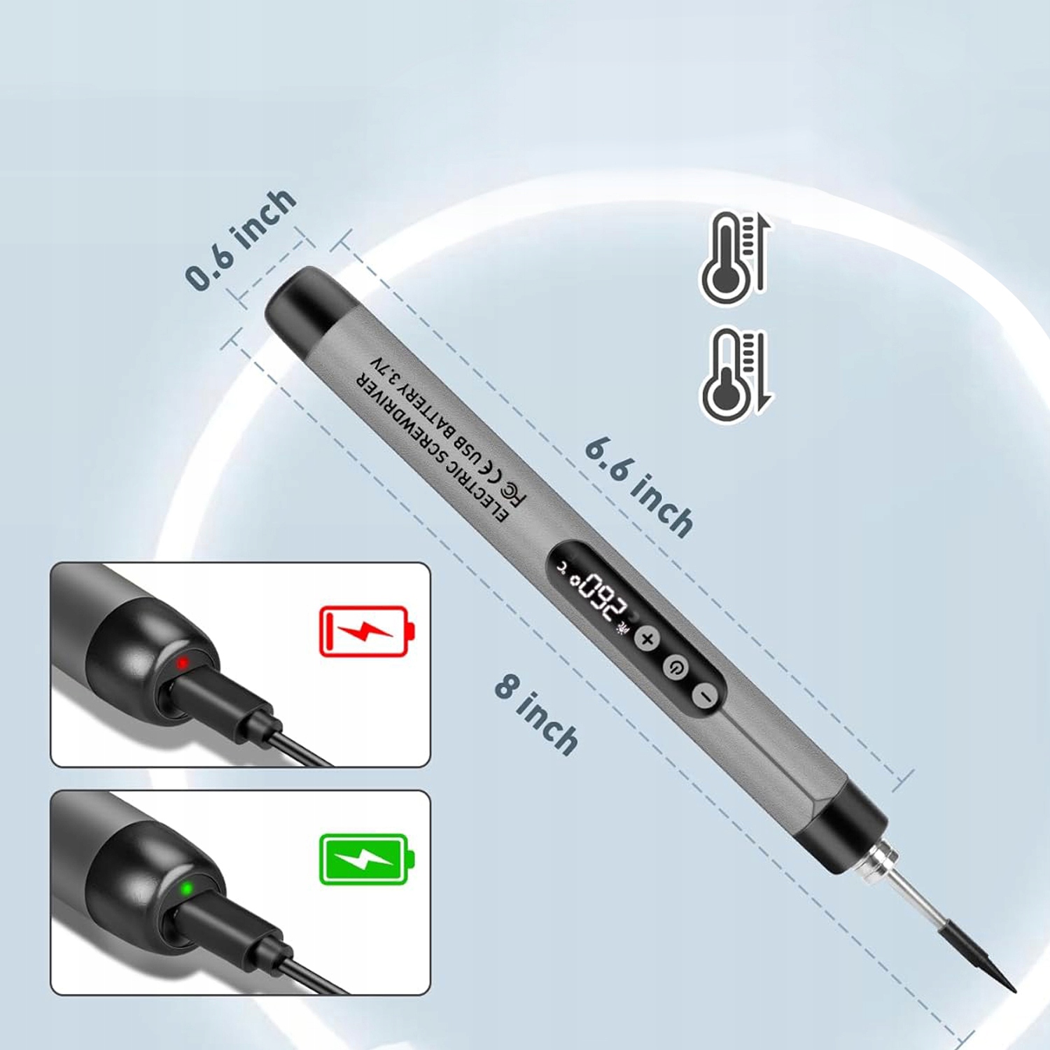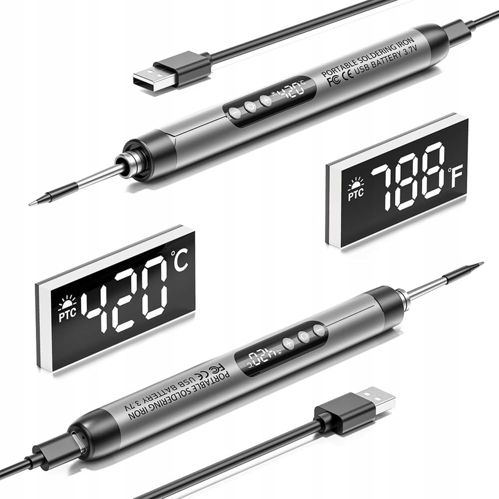 Працюйте без кабелів! Заряджається паяльник через USB-порт (наприклад, від павербанка, автомобільної зарядки або комп'ютера). Відсутність кабелю означає більшу мобільність і комфорт.