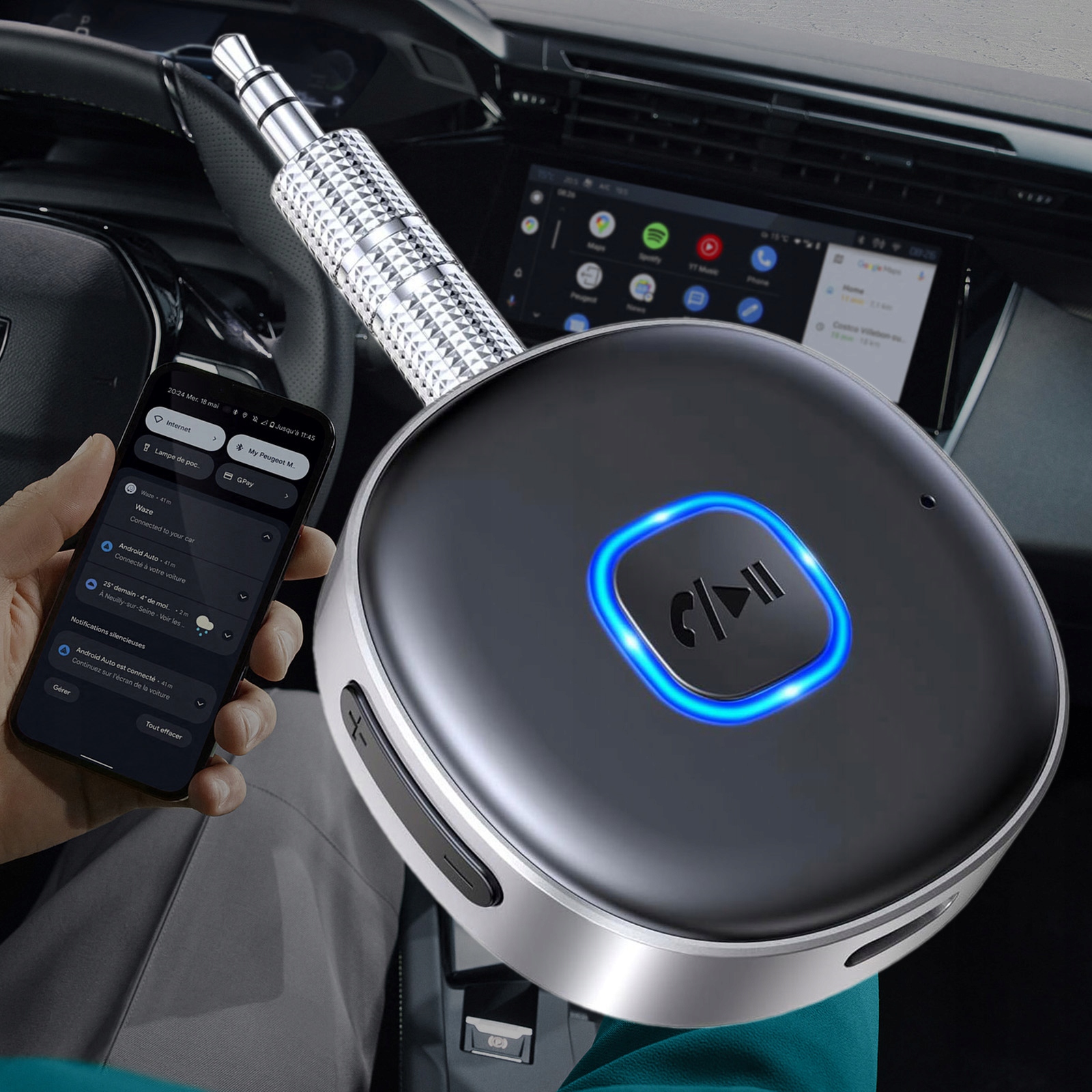 ✦💖 Підключіть порт AUX приймача Bluetooth до порту аудіовходу вашої домашньої колонки чи автомобіля стереосистему за допомогою аудіокабелю 3,5 мм, що входить до комплекту, або підключіть дротові навушники 3,5 мм до порту AUX приймача Bluetooth.
