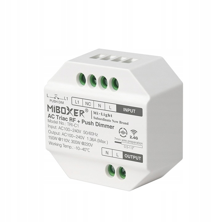 ✅ TRI -C1 — це пристрій, який дозволяє керувати установкою 230 В за допомогою пульта дистанційного керування або програми. Бездротове реле TRI-C1 також має вбудовану функцію затемнення, що дозволяє змінювати яскравість світильників, підключених до реле.
