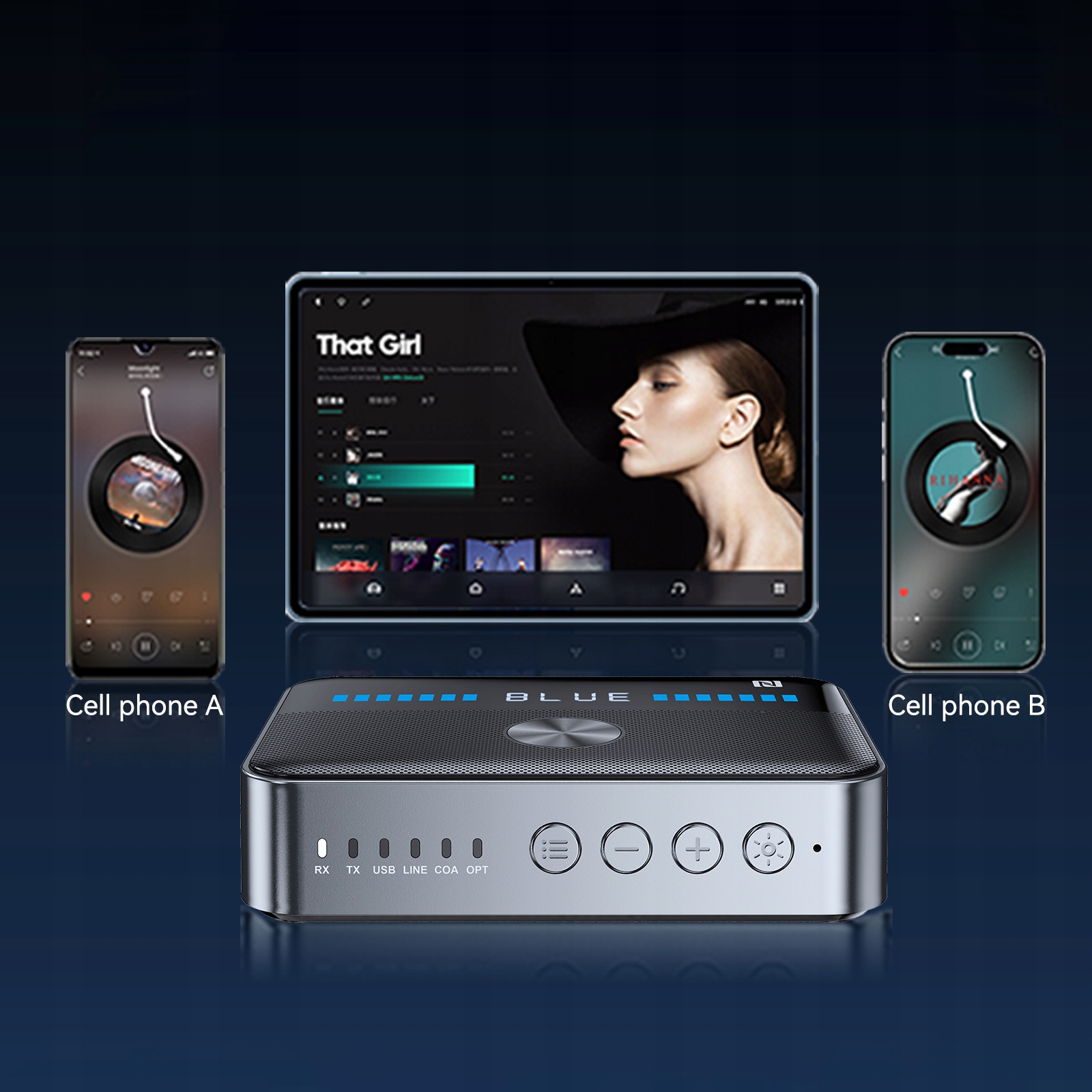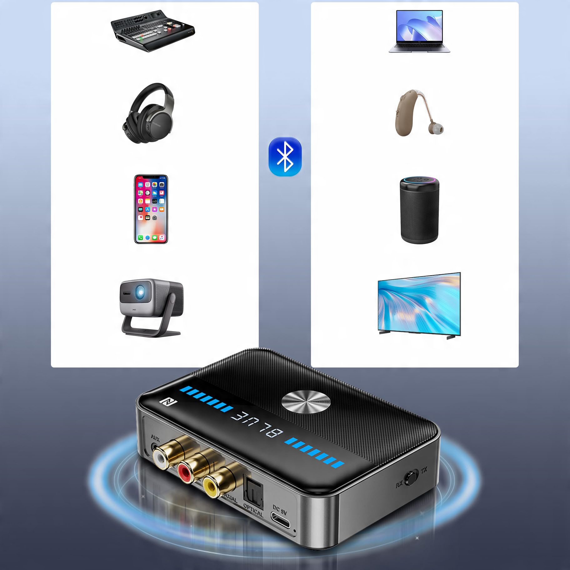 адаптер Bluetooth з цифровим оптичним та коаксіальним до аналогового дизайну може бути одночасно використовуватися як передавач Bluetooth (режим TX) та приймач Bluetooth (режим RX), зі швидкістю Samling до 192 кГц/24Bits, швидкого аналогового сигналу. Це дозволяє бездротово підключати пристрої для домашніх розваг за допомогою підключення Bluetooth. Це допомагає вирішити проблему одного інтерфейсу.