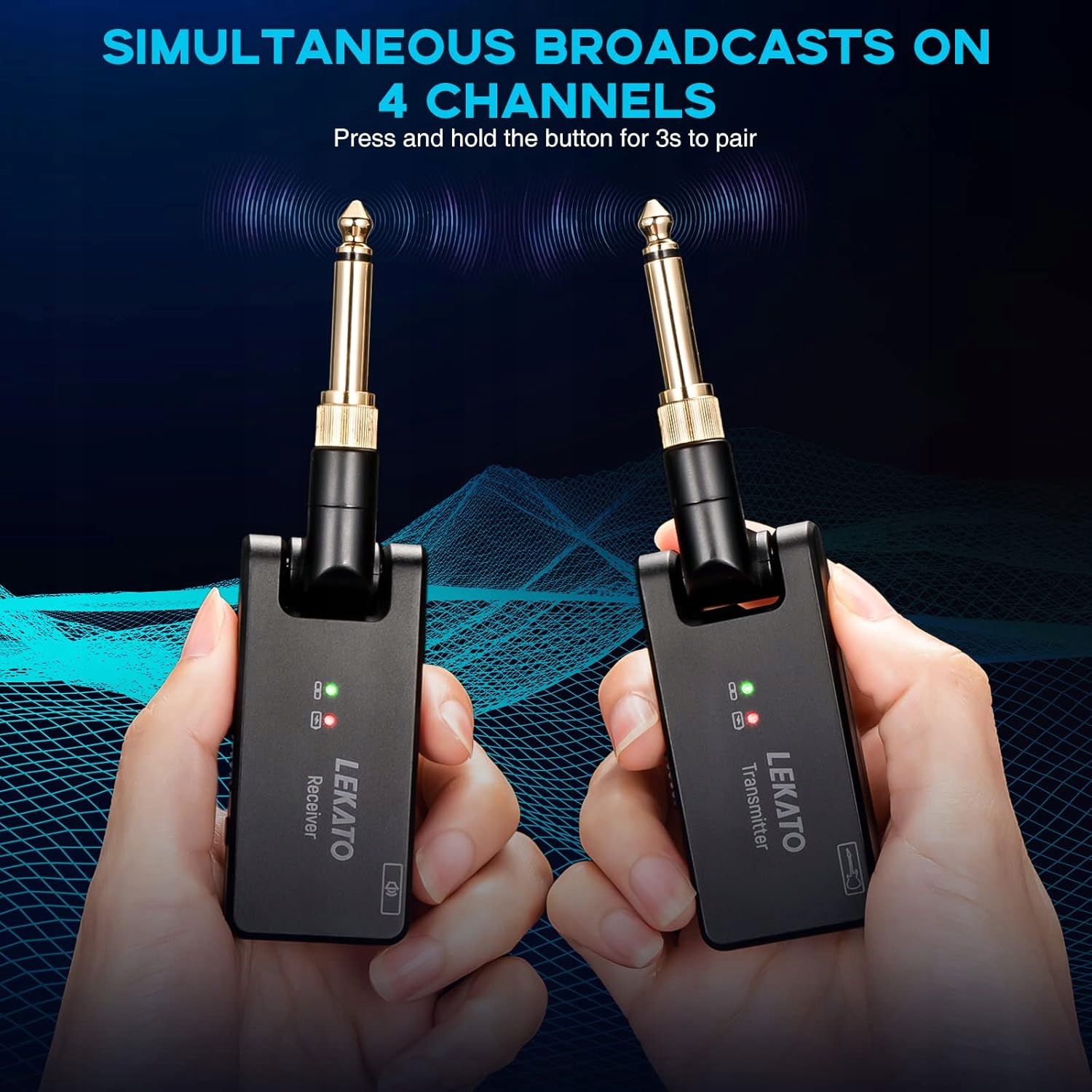 Бездротова гітарна система LEKATO із футляром для зарядки, бездротовим передавачем, комплектом приймача, вбудованим акумулятором, бездротовою гітарою, бас-гітарою, цифровою гітарною системою для електрогітари