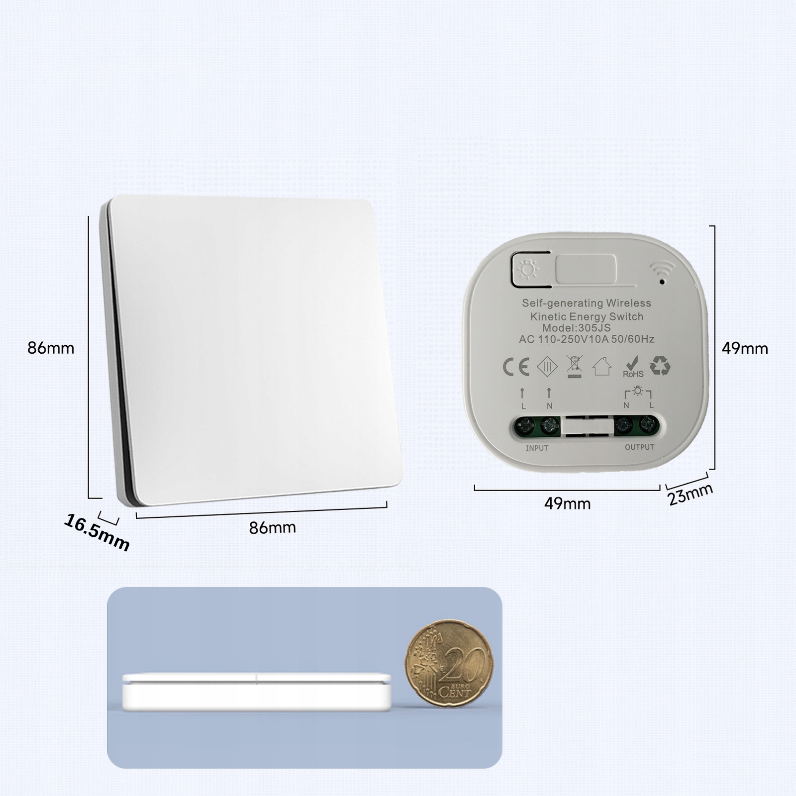 Цей безбатарейний бездротовий дистанційний вимикач не потребує батарейок і готовий до використання відразу після покупки. Його елегантний дизайн робить його ідеальним вибором для комутаторів.