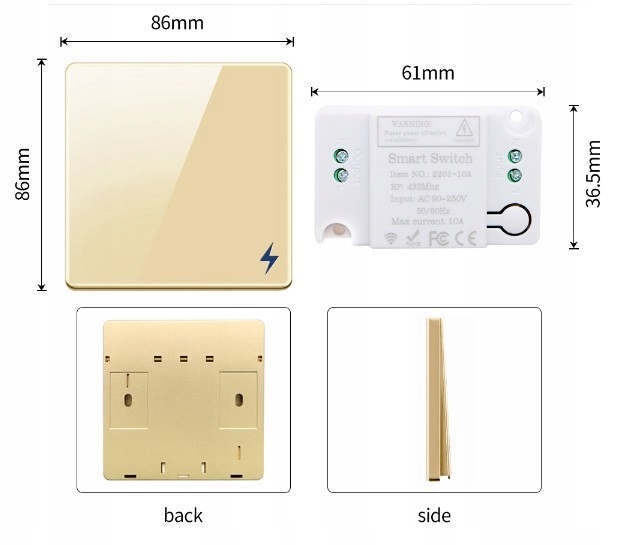 - Розмір панелі комутатора: довжина 8,6 * ширина 8,6 * висота 1,3 см
