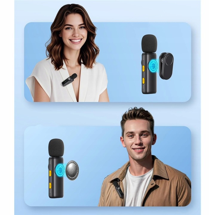 🎙️【Магнітний дизайн забезпечує легке та непомітне кріплення】 Цей оновлений бездротовий петличний мікрофон має потужну магнітну кліпсу на задній панелі, яку можна надійно прикріпити до футболок, курток і навіть металевих поверхонь для зручності без використання громіздких кліпс. Незалежно від того, чи знімаєте ви в дорозі чи в обмеженому просторі, цей дизайн робить позиціонування легким і непомітним — ідеально підходить для інтерв’ю, відеоблогів і навчальних посібників. Ідеально підходить для мікрофона з кліпсою, мікрофона iPhone mini і бездротового мікрофона для користувачів Android.