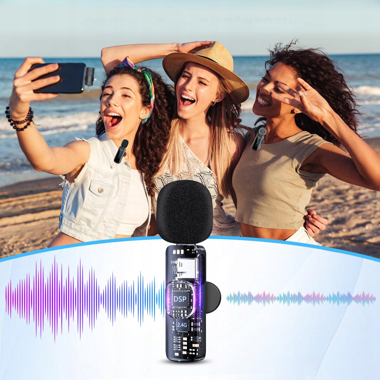 【З активним шумозаглушенням】 Цей бездротовий мікрофон має вбудовану мікросхему інтелектуального активного шумозаглушення, яка підтримує до трьох рівнів шумозаглушення. Забезпечує чіткі фотографії навіть у шумному середовищі.