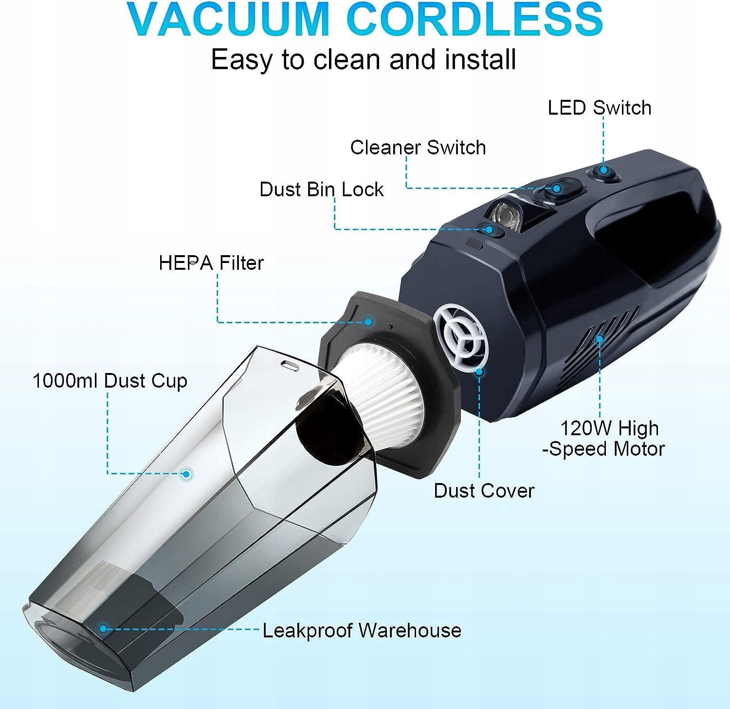 Легка конструкція дозволяє легко пилососити без громіздких або заплутаних шнурів, прибирання будь-якої поверхні навколо вашого автомобіля чи навіть у вашому домі легко та ефективно.