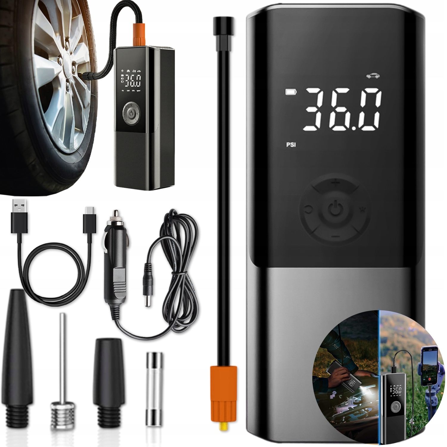 - Цей компресор також виконує додаткові функції: це може бути powerbank і зарядитись, наприклад Ваш телефон та випромінюють 3 режими освітлення , які можуть бути корисними в надзвичайних ситуаціях. З найвищої якості матеріалів .