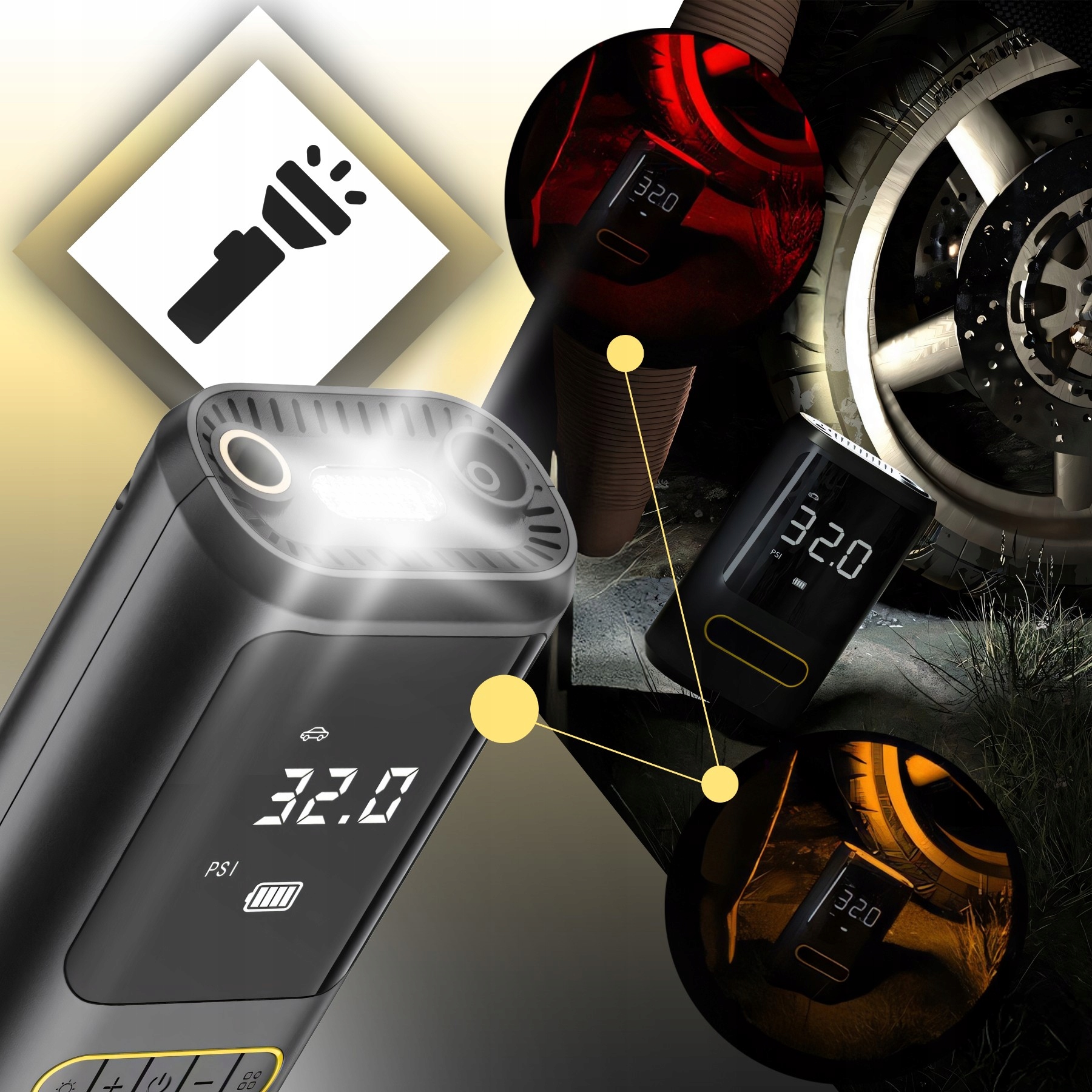 ⭐ PowerBank 4000mAh: Завдяки функції PowerBank Компресор також може використовуватися для зарядки інших мобільних пристроїв.