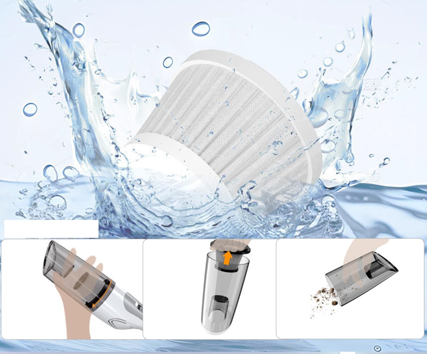 - [Комплексне глибоке очищення]: Цей пилосос автомобіля оснащений трьома аксесуарами: довга наконечник, пензлик, м'яка довга змія. Ви можете вільно з'єднати їх. Портативний вакуумний очищувач допомагає очистити жорсткий -доречлий прихований, заглиблюючись у диван, матраци, килими, кухню, автомобіль тощо.